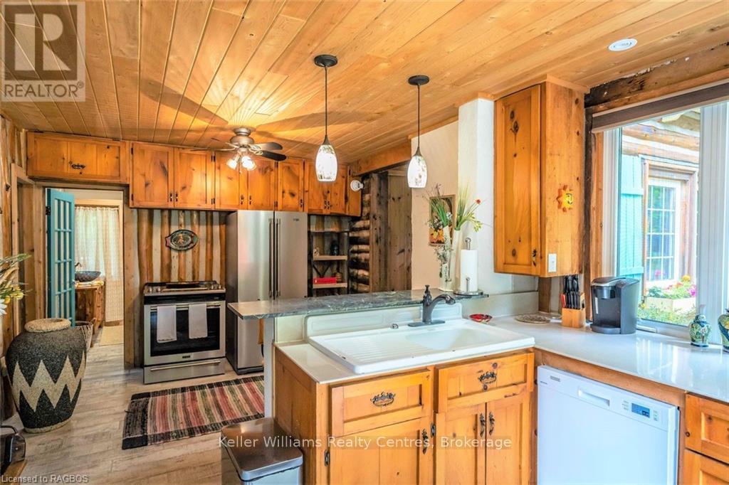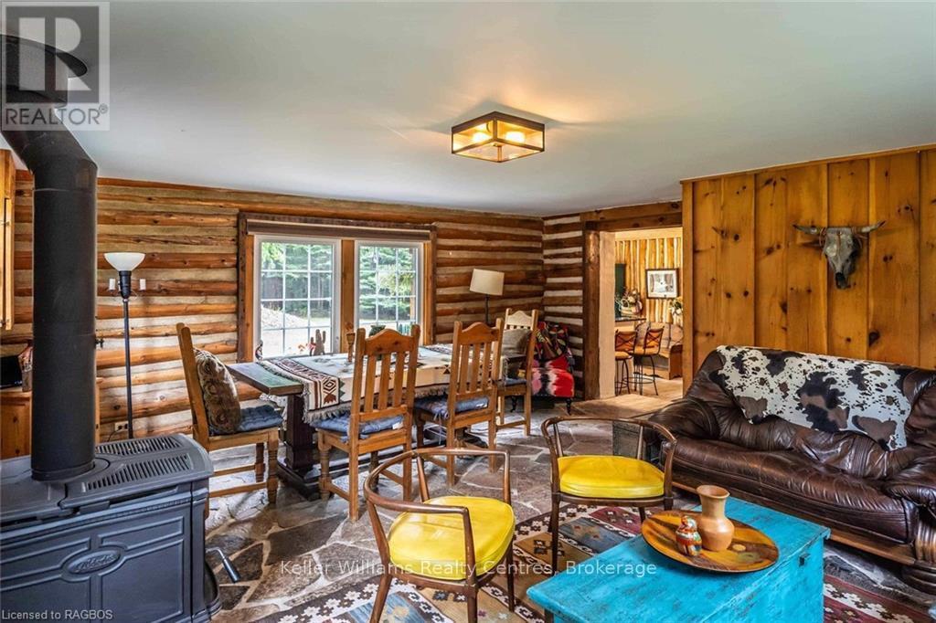 Enjoy the peace and privacy of this charming log cabin in Oliphant, set on an expansive 5.7-acre property surrounded by parkland. Offering 3 bedrooms and 1 bathroom, this home delivers a warm and inviting atmosphere with its rustic character and cozy woodstove, perfect for year-round comfort. Tucked away in a serene natural setting, the property provides exceptional privacy while still being just a short drive to Wiarton and Sauble Beach for everyday amenities and recreation. With a proven track record of short term rental income this property is a prime investment opportunity. Whether you're looking for a full-time residence a peaceful retreat, or an investment opportunity, this unique property offers a rare opportunity to own a slice of tranquil countryside living. (id:64974)