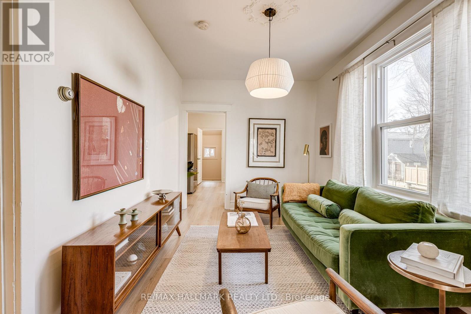 Welcome to 31 Myrtle - a rare, light-filled corner semi in the heart of South Riverdale.This solid brick, 4-bedroom home with parking strikes a thoughtful balance between timeless character and meaningful upgrades. Original details bring warmth and authenticity, while key improvements - including updated windows, refreshed flooring, modern appliances, and a fully re-wired electrical system - offer everyday comfort and peace of mind.The main floor is bright and functional, with the kitchen flowing seamlessly to a mudroom (easy to convert to powder room) and a fully enclosed backyard - ideal for easy indoor-outdoor living. Upstairs, three well-proportioned bedrooms and a family bath provide flexibility for growing families, guests, or work-from-home needs.The standout third-floor retreat elevates the home entirely - featuring soaring cathedral ceilings, a fourth bedroom, and a walkout to a private, southwest-facing deck with treetop views. A rare and serene escape in the city. The basement offers untapped potential for those looking to expand, customize, or explore future income opportunities. Set on a coveted corner lot just steps from Gerrard East, you're surrounded by some of the east end's best cafés, restaurants, and local favourites, with nearby parks and easy transit access completing the lifestyle. (id:64974)
