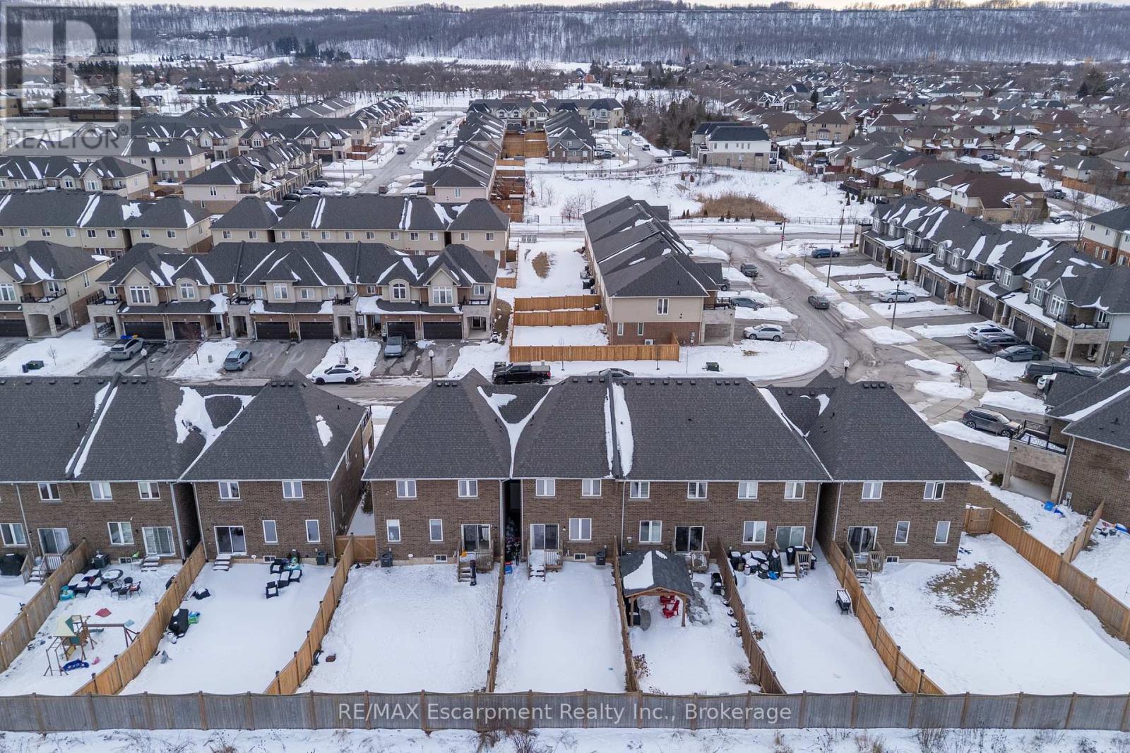 Beautifully maintained freehold townhome in the sought-after Foothills of Winona, offering the perfect combination of space, upgrades, and location. This bright 3-bedroom, 2.5-bathroom home features an excellent two-storey layout ideal for families, professionals, and commuters alike. The upgraded main floor showcases 9-foot ceilings, hardwood flooring, an oak staircase, pot lights, and a seamless open-concept design. The kitchen is both stylish and functional with white cabinetry, stainless steel appliances, and a large island overlooking the living and dining areas. Walk out to a private, fully fenced backyard with deck - perfect for summer entertaining. Upstairs, the oversized primary bedroom includes two walk-in closets and a private 3-pieceensuite. Two additional generously sized bedrooms and a full 4-piece bathroom complete the upper level. The upgraded basement offers endless potential and is already roughed-in for a future bathroom, making it ideal for additional living space, a home gym, or in-law capability. Located just minutes to the QEW, this home is a fantastic option for commuters while still being surrounded by convenience. Enjoy quick access to shopping, restaurants, parks, schools, Winona Crossing, and waterfront trails at Fifty Point Conservation Area. An exceptional opportunity to own a move-in ready freehold townhouse in one of Winona's fastest growing communities. (id:64974)