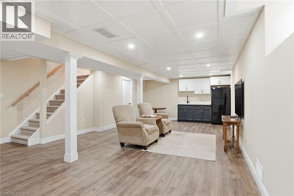 Ideally located within walking distance to Helen Detweiler Public School and St. Marguerite d’Youville Catholic Elementary School, as well as the YMCA, parks, library, Limeridge Mall, public transit, and with quick access to the Lincoln Alexander Parkway. This home offers many updates, including a modern kitchen with custom-built cabinetry featuring soft-close drawers, crown molding, granite countertops, stainless steel appliances, a coffee bar, tiled backsplash, under-cabinet lighting, and an over-the-range microwave. Sliding glass doors lead to a fully fenced backyard. Additional features include Alterra luxury tile and Mirage hardwood flooring, an updated glass front door, and a gas fireplace in the living room with a matching wood mantle and ceramic tile hearth. All window coverings and light fixtures are included, along with convenient main floor laundry. The home offers 4 bedrooms, including a spacious primary bedroom with an ensuite walk-in shower, as well as walk-in closets in 3 of the 4 bedrooms. A second full bathroom on the upper level includes a soaker tub. The fully finished basement features oversized windows, a kitchenette with sink and fridge, and great potential for a future in-law suite. It is complete with floor underlayment, luxury vinyl plank flooring, an electric wall-mounted fireplace, and a wine cellar. Additional highlights include a 2-car garage with inside entry, parking for up to 4 vehicles in the driveway, ample storage throughout, and owned hot water tank, furnace, and A/C. (id:64974)