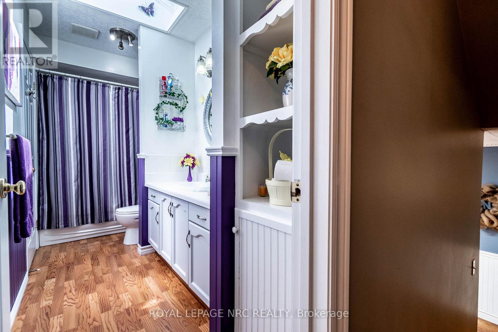 Welcome to 31 Rollins Drive. This 4 level all brick backsplit is centrally situated in North Welland & backs onto greenspace with no rear neighbours! A lovingly landscaped front garden & interlocking brick driveway guide you to the front porch of this meticulously maintained 3 bedroom home boasting +1400 livable sqft. First level features a convenient main floor layout with hardwood flooring throughout & an open concept living room with large bay window that allows plenty of natural light. This floor also features a spacious private dining room, bright eat-in kitchen with skylight/lots of cabinets, & side door access onto private fully fenced backyard with interlocking brick walkway. Second level has 3 generous sized bedrooms including oversized master bedroom with 4 piece en-suite bathtub jacuzzi + skylight, & walk-in closet/ceiling fan. Fully finished lower level contains massive rec room/home office with tiled cozy electric fireplace & 3 large windows. Lower level basement also fully equipped with mini-kitchenette, 3 piece bath with standing shower, & laundry/utility room. This additional living space is ideal for an in-law suite, guests, or growing family. Attached garage with inside entry and man door access onto very private immaculately landscaped backyard complete with 10x12 sunroom & storage shed (both with hydro) The perfect spot for those who like to tinker or simply relax after a long day. Additional Upgrades: Furnace/AC (2024) B.I. Microwave (2024) Roof (2016) Kitchen & Bathroom Skylights (2016) Nearby Amenities: QEW/406/Niagara College/shopping/schools/golf. Excellent opportunity to join an established neighbourhood in North Welland! (id:64974)