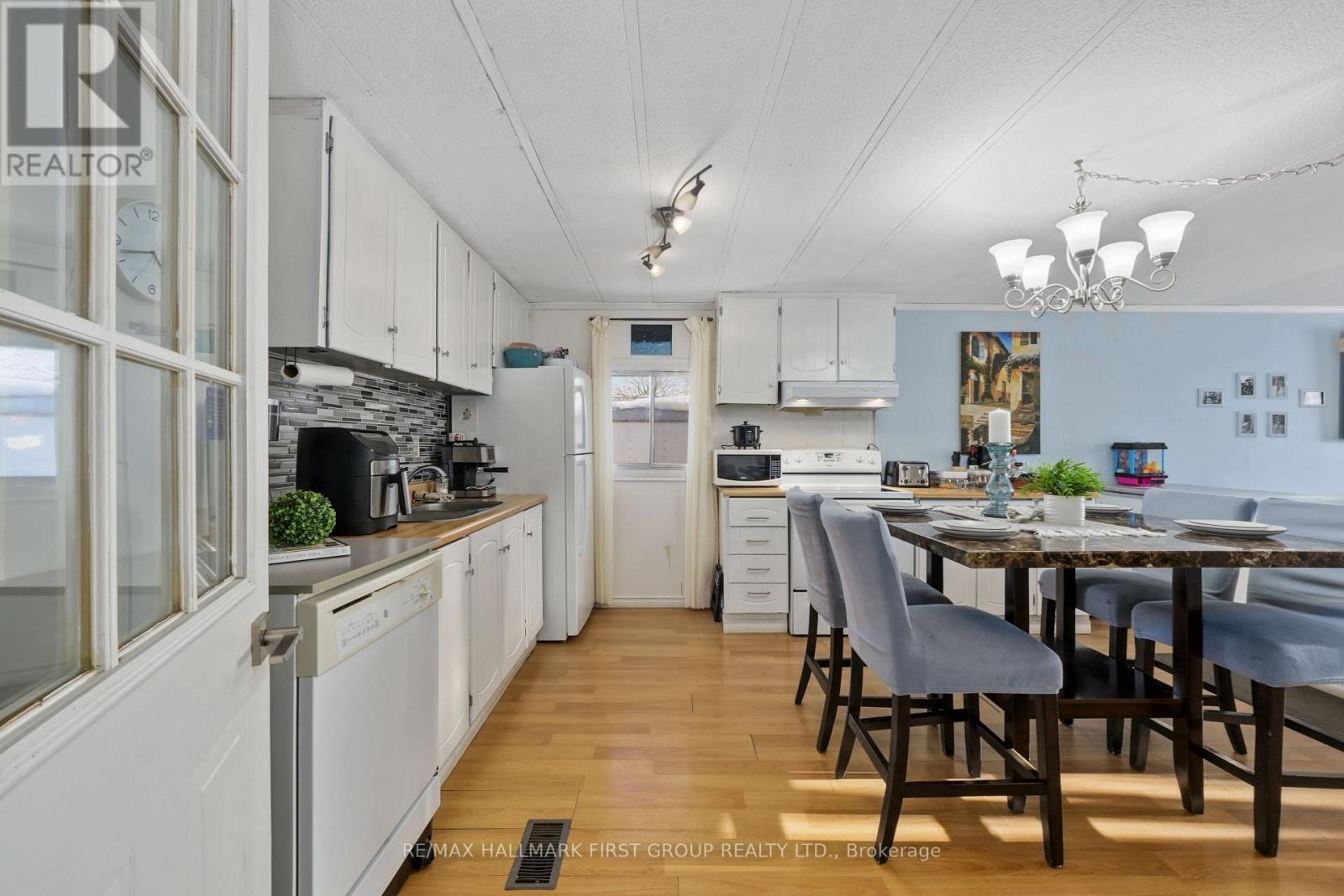 Affordable living in the Cobourg area with the ease of one level living. This home features an open principal living space with a carpet free layout and a bright, functional design. The well appointed eat in kitchen offers matching appliances and flows into the living area, where two large windows bring in plenty of natural light. The home includes three bedrooms, a full bathroom, plus flexible additional spaces with a den and office to suit a variety of needs. The den offers a walkout to the yard, creating an easy connection to the outdoor space. Convenient laundry adds to the practical layout. Step outside to enjoy both a large covered deck and an additional open back deck overlooking the fully fenced yard with ample green space for relaxing, gardening, or entertaining. Located close to local amenities and offering easy access to Highway 401, this property offers comfortable living in a convenient location. (id:64974)