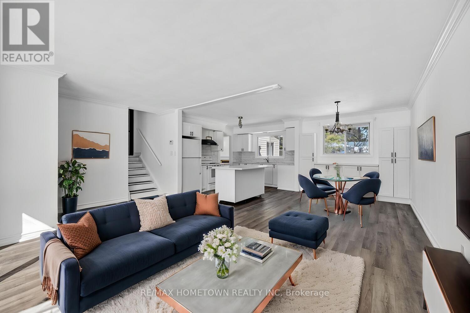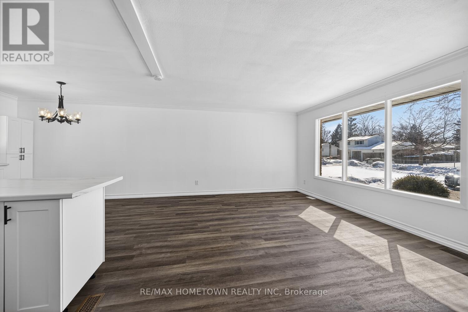 Welcome to this well-maintained 3 bedroom side split located in a great family-friendly neighbourhood! Ideally situated within walking distance to public and Catholic elementary schools as well as the local high school, this home offers both convenience and community. The bright open-concept main floor features a spacious kitchen complete with a centre island and flows seamlessly into the dining area with built-ins-perfect for everyday living and entertaining. A rear addition provides a generous family room with natural gas fireplace, creating extra space for gatherings, movie nights, or relaxing at the end of the day. Upstairs you'll find three comfortable bedrooms and a 4-piece bathroom. The lower level offers even more living space with a recreation room, great space for teenagers or a craft room, 3-piece bath, laundry area, and utility room. Freshly painted throughout with updated flooring, this move-in ready home is ready for its next family to enjoy. Don't miss this fantastic opportunity! (id:64974)