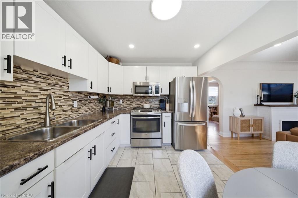 Nestled on a quiet, mature street, 31 Willow Drive combines timeless charm with thoughtful updates. The sunlit living room features original hardwood floors and an inviting fireplace (electric) open to the kitchen (eat-in dining room), 2+1 bedrooms and 2 fully updated bathrooms. A newly renovated basement expands your living options with fresh, modern finishes. Outdoors is an oversized fenced yard offers privacy, large deck, gas BBQ hook-up and room to play ,double car driveway, while the one-car garage adds everyday convenience. With close proximity to Hwy 403, the Wayne Gretzky Centre, schools, city transit, shopping and scenic parks, this home offers an ideal balance of tranquility and accessibility. (id:64974)