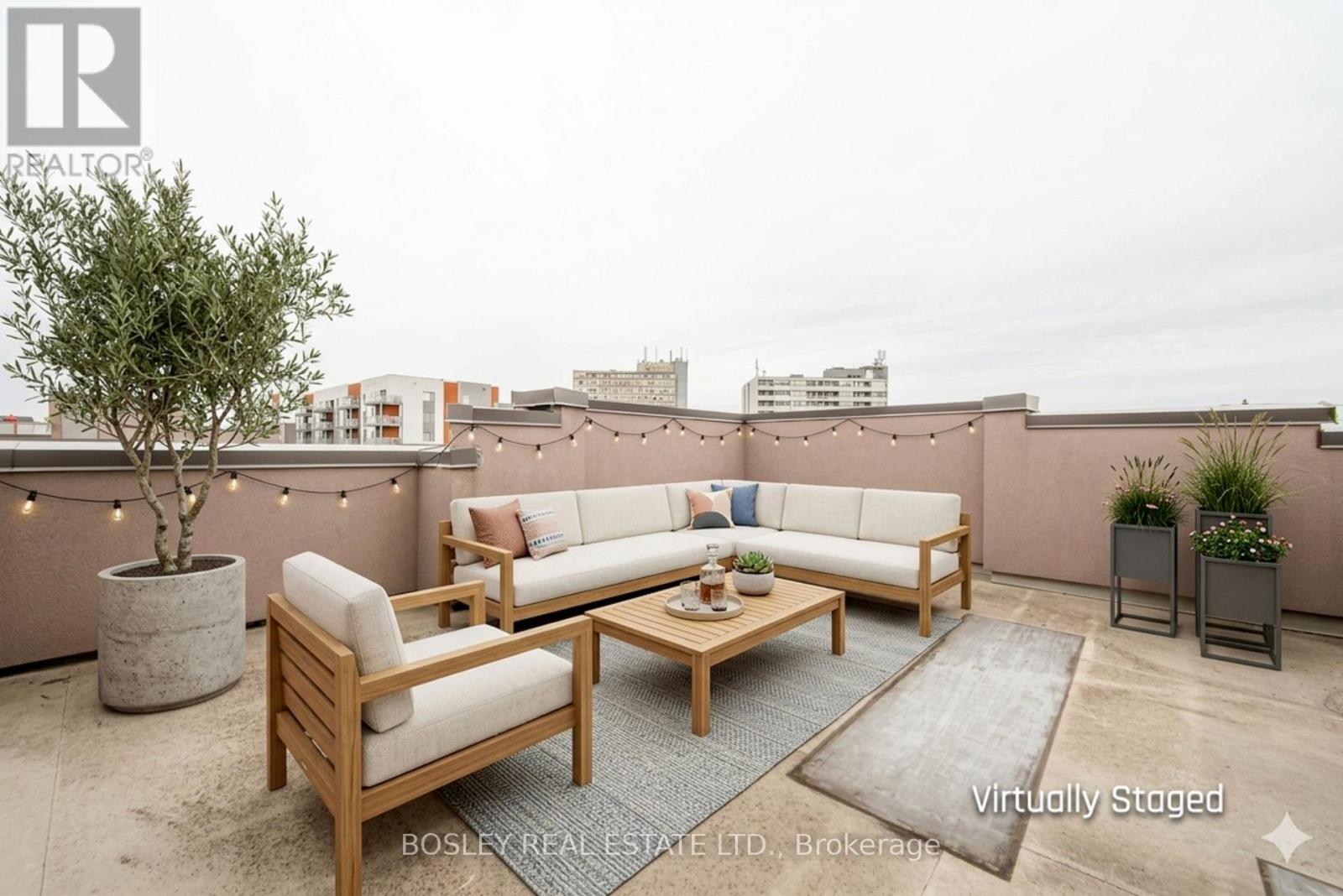 Welcome to this sun-filled, upper-level corner unit in the heart of Scarborough. This modern stacked townhouse offers an airy, open-concept layout designed for contemporary living. As a desirable corner unit, enjoy expansive windows that flood the home with natural light. The functional kitchen features contemporary cabinetry, quality countertops, and stainless steel appliances, flowing seamlessly into the living and dining areas. Sleek laminate flooring on the main floor provides a clean and durable aesthetic. Two well-sized bedrooms offer ample closet space and large windows. Relax on your private terrace, perfect for morning coffee. Includes one underground parking spot and a dedicated storage locker. Visitor parking and bike storage are available within the complex. Perfect for working professionals, and families alike, you are steps away from everything you need. Convenient access to TTC, GO Transit, Scarborough Town Centre, restaurants, local supermarkets (Food Basics), and numerous parks. (id:64974)