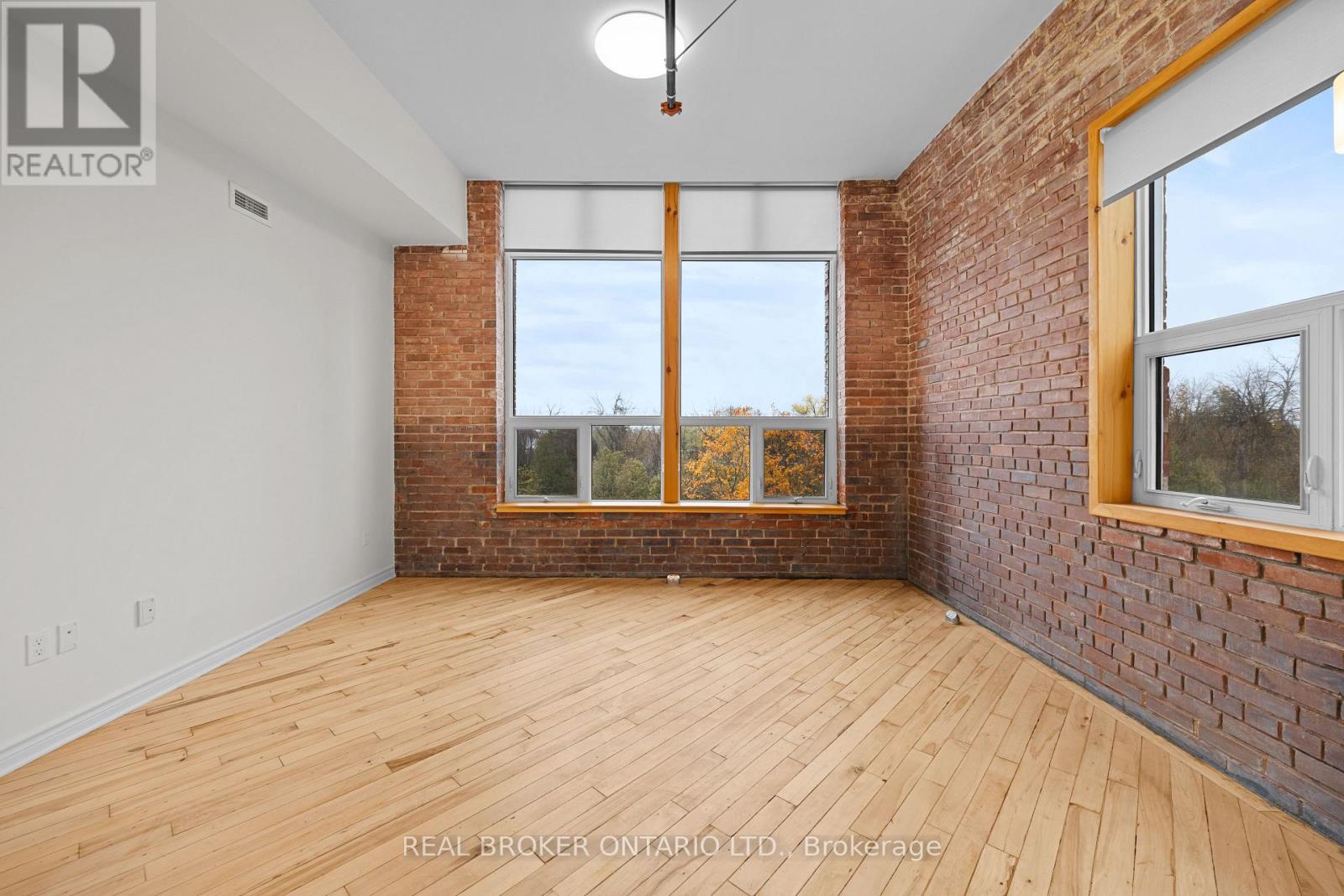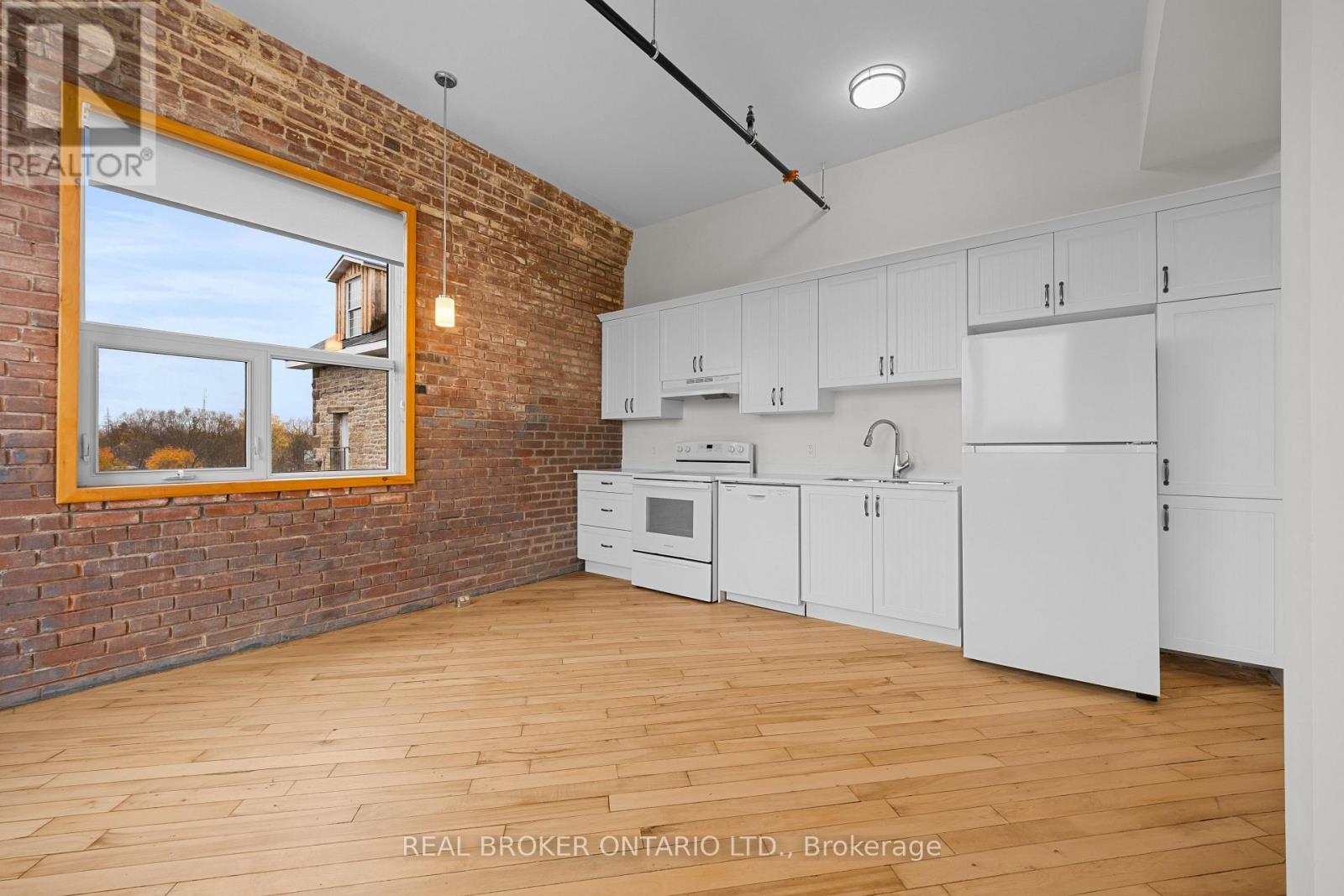 Discover a truly unique 2-bedroom apartment in a beautifully restored historic mill on McArthur Island, right in the heart of Carleton Place. Offering approximately 880 sq ft, this one-of-a-kind space blends century character with modern comfort. Exposed brick, original hardwood floors, and soaring ceilings highlight the building's heritage, while large windows bring in abundant natural light and offer a partial view of the Mississippi River.The open living area feels warm and inviting, with a layout that maximizes functional living and flexible furniture arrangements. Two well-sized bedrooms provide comfort and privacy - ideal for working from home, sharing, or creating a guest space. Step outside and enjoy the best of Carleton Place on foot: Bridge Street's shops, cafés, and restaurants, along with scenic riverfront trails and pathways, are all just a short walk away. This is a rare opportunity for those who appreciate history, architecture, and a walkable small-town lifestyle in a sought-after location.Bonus: free surface parking for the first year. (id:64974)