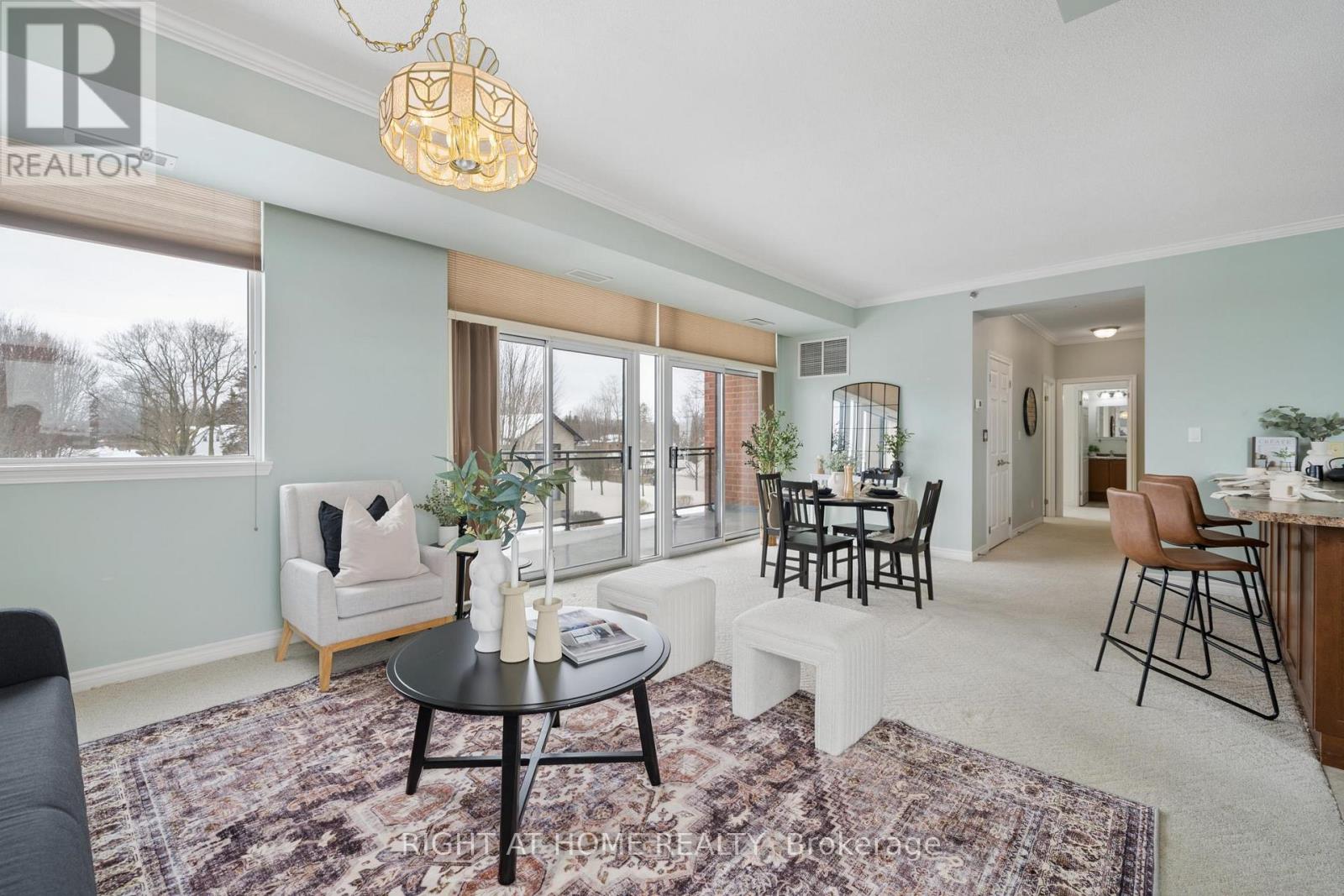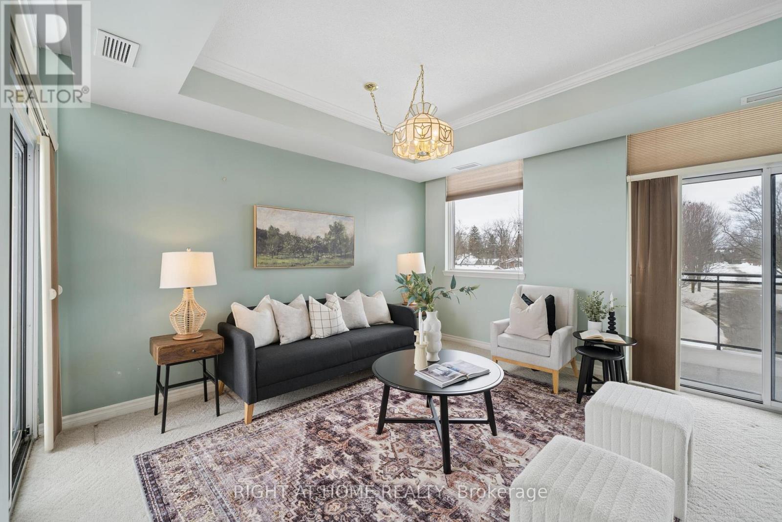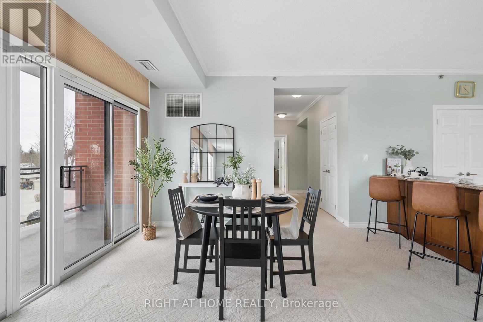 Spacious corner unit in sought after Bayview Condominium located in historic Port Perry. Short stroll to downtown shops, restaurants, lakefront park and marina. This 1100 sf ,2 bedroom, 2 bathroom unit is the largest of the 2 bedroom units and is the only model that offers both east and west exposure with 2 totally private balconies. Ensuite laundry and storage. 9 ft ceilings. Capability to install electric vehicle charging station at buyer's expense. 3 walkouts with city and lake views. Please note that parking spot is #38 ( (legal Level A unit 37) (id:64974)