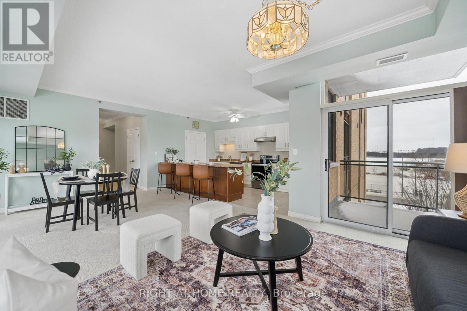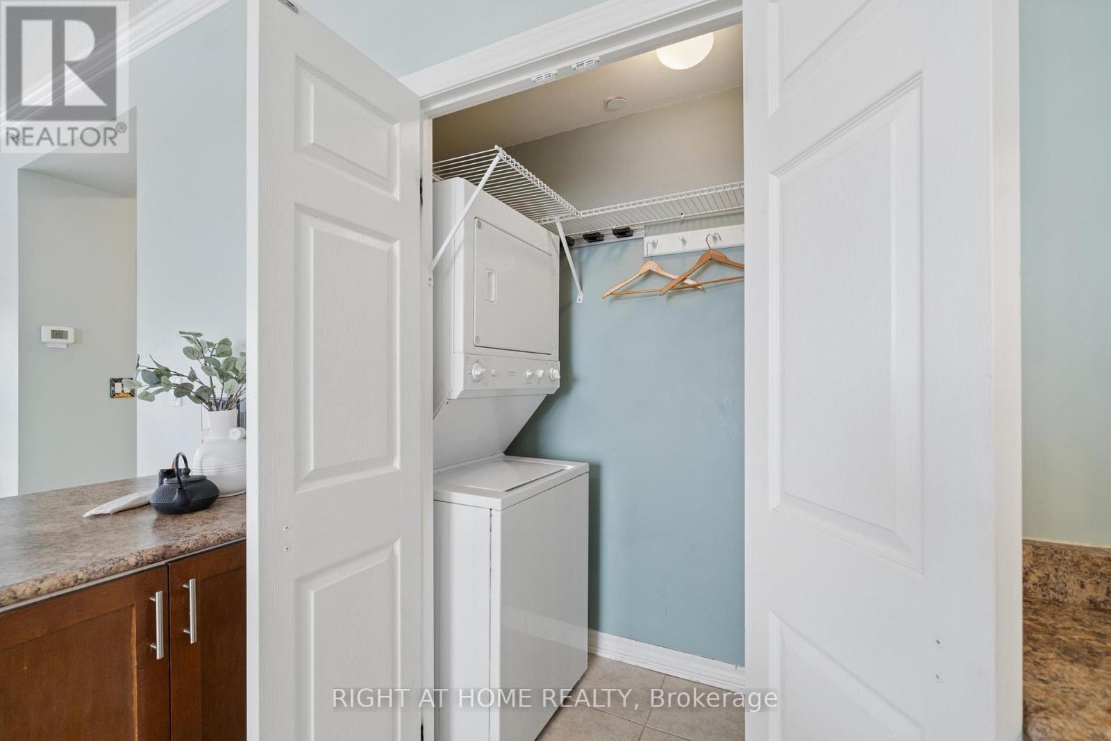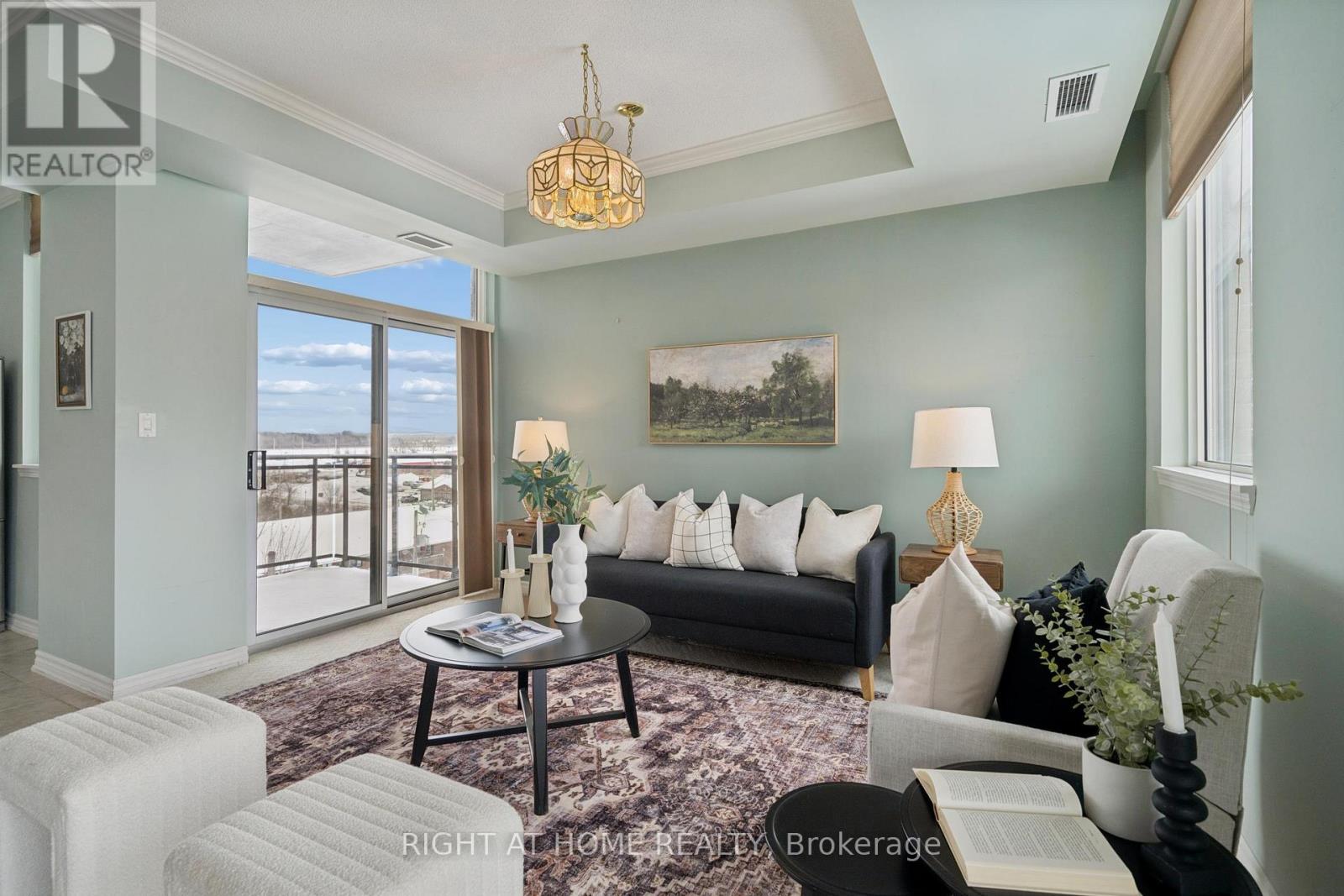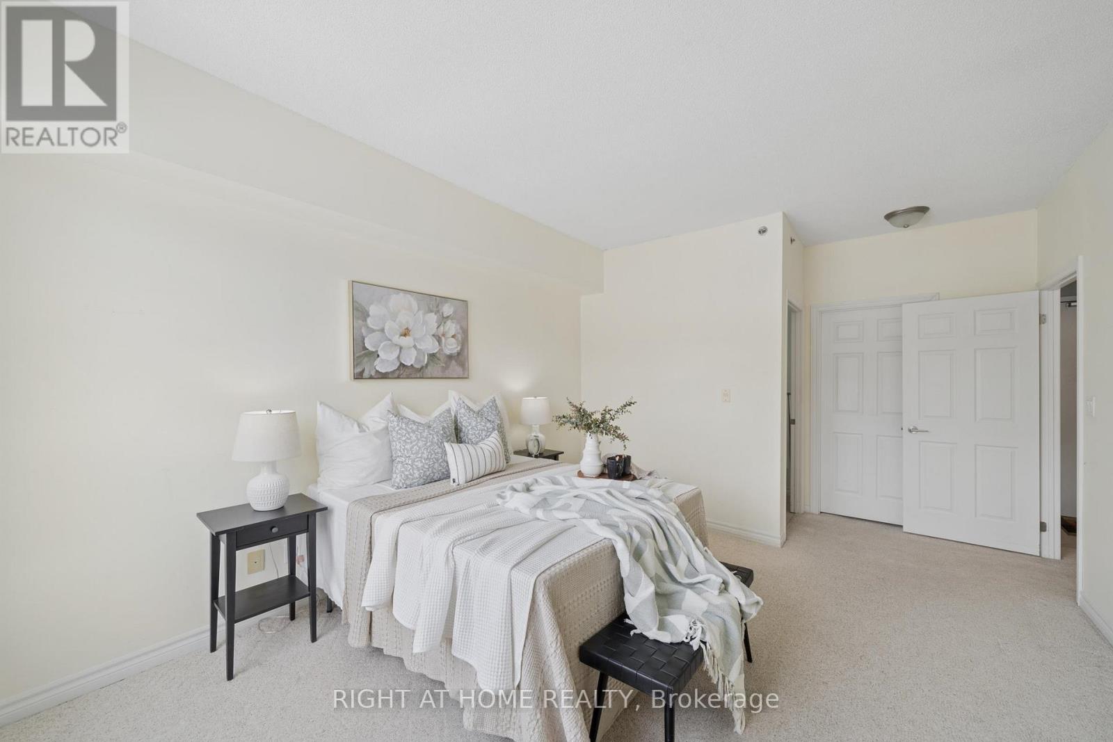 Spacious corner unit in sought after Bayview Condominium located in historic Port Perry. Short stroll to downtown shops, restaurants, lakefront park and marina. This 1100 sf ,2 bedroom, 2 bathroom unit is the largest of the 2 bedroom units and is the only model that offers both east and west exposure with 2 totally private balconies. Ensuite laundry and storage. 9 ft ceilings. Capability to install electric vehicle charging station at buyer's expense. 3 walkouts with city and lake views. Please note that parking spot is #38 ( (legal Level A unit 37) (id:64974)