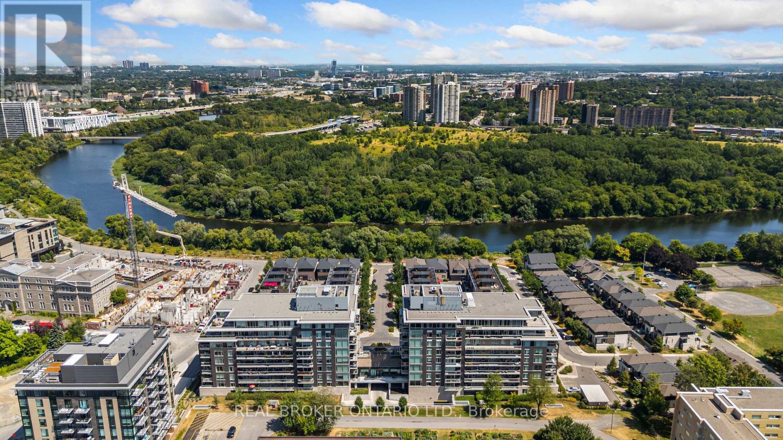 Welcome to 310-530 De Mazenod! This stunning 2 bedroom + den, 2 bathroom corner unit in the prestigious River Terrace 1 at Greystone Village, crafted by EQ Homes. Designed for modern living, this sophisticated condo offers an abundance of natural light, high-end finishes, and a thoughtfully designed layout. The sleek, open-concept kitchen features a gas stove, quality cabinetry, and a large stylish island perfect for entertaining. The living space opens to a private balcony with a gas BBQ hookup. The primary bedroom features a wall of closets and spacious ensuite bathroom with glass shower. On the other side of the unit you will find a functional den next to the 2nd bedroom which features a murphy bed included with the unit. Enjoy the convenience of underground parking and a storage locker, plus an impressive list of amenities: a fully equipped gym and yoga space, elegant guest suite, recreation room with outdoor patios, meeting room, car wash/pet wash station, and kayak storage for waterfront adventures.Situated in Old Ottawa East, youre steps from the Rideau Canal, minutes to downtown, and have easy access to the Glebe via the Flora Footbridge. With the highway nearby, commuting is a breeze, and the surrounding community offers a perfect balance of nature, culture, and urban convenience. (id:64974)