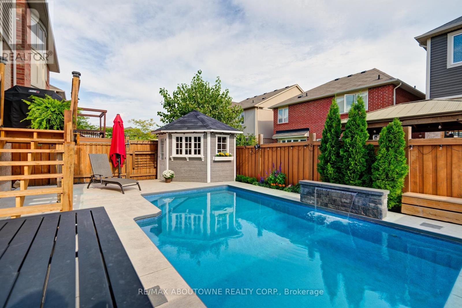 Beautiful 2,296 square foot brick and stone detached home located in Milton's sought-after Harrison neighbourhood, a family-focused community known for its parks, playgrounds and walking trails.This well-designed home offers spacious principal rooms with beautiful maple hardwood flooring, Approx. 52 upgraded pot lights, Kitchen Aid B/I cooktop and wall oven .The Living room features Cathedral ceiling and 2 French doors to large balcony.and overlooks a formal dining room, The open concept kitchen with breakfast area overlooks the backyard.Step outside to your private backyard oasis featuring an pioneer in-ground pool installed in 2021. Perfect for summer entertaining and relaxing with family and friends.The upper level offers generously sized bedrooms including a spacious Primary suite with 5Pc ensuite bath.hardwood maple floors and walk-in closet.The finished basement adds valuable living space with a recreation room, bedroom with 3pce ensuite bathroom, ideal for guests, teens or extended family.Located close to excellent schools, parks, shopping and commuter routes, this home offers the perfect combination of space, comfort and location in one of Milton's most desirable neighbourhoods (id:64974)