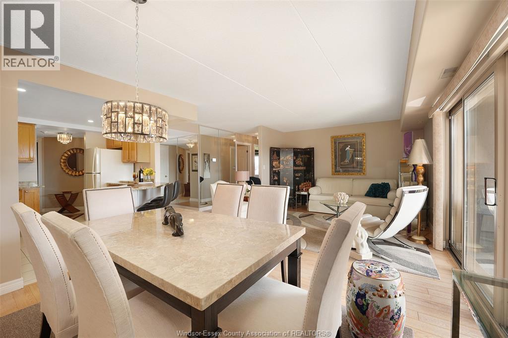Experience refined, maintenance-free living in the prestigious St. Clair Beach/Tecumseh community, ideally situated within the highly sought-after Village Grove—just steps from Lakewood Park, boutique shopping, banking, professional services, and an array of dining options. This stylish CORNER residence showcases two-bedroom, two-bathroom, an upgraded kitchen featuring oak cabinetry, granite countertops, and bright & modern pot lighting (no fluorescent ceiling). Spacious open concept living & dining room with mirror accent walls to boost the natural light from the wide patio doors. South facing tiled balcony offers additional living space to enjoy outdoor entertaining all summer long. The primary suite boasts a walk-in closet and a private ensuite, while in-suite laundry with additional storage enhances everyday convenience. Residents enjoy the benefits of dual entrances (East and West), each serviced by its own elevator, and only four suites per floor per side— ensuring privacy and exclusivity. Underground parking and a dedicated storage locker are included. Exceptional amenities complete the offering, including an outdoor pool, tennis / pickle ball courts, a stylish party room with a full kitchen, and a well-appointed fitness centre with sauna. Elevate your lifestyle in a residence that perfectly balances comfort, convenience, and sophistication. (id:64974)