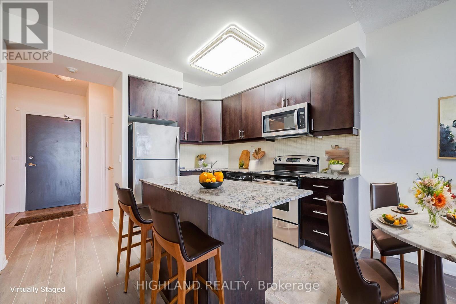 Bright and spacious 1+1 bedroom condo with Southeast exposure in the heart of Mississauga! Features brand new flooring and fresh paint throughout. Functional open-concept layout with floor-to-ceiling windows bringing in abundant natural light. Enjoy breathtaking panoramic views of the city, Lake Ontario, and the distant CN Tower from your private balcony. Modern kitchen with stainless steel appliances. Steps to Square One, Sheridan College, Celebration Square, and public transit. Excellent building amenities include gym, pool, sauna, and 24-hour concierge. Perfect for first-time buyers or investors! (id:64974)