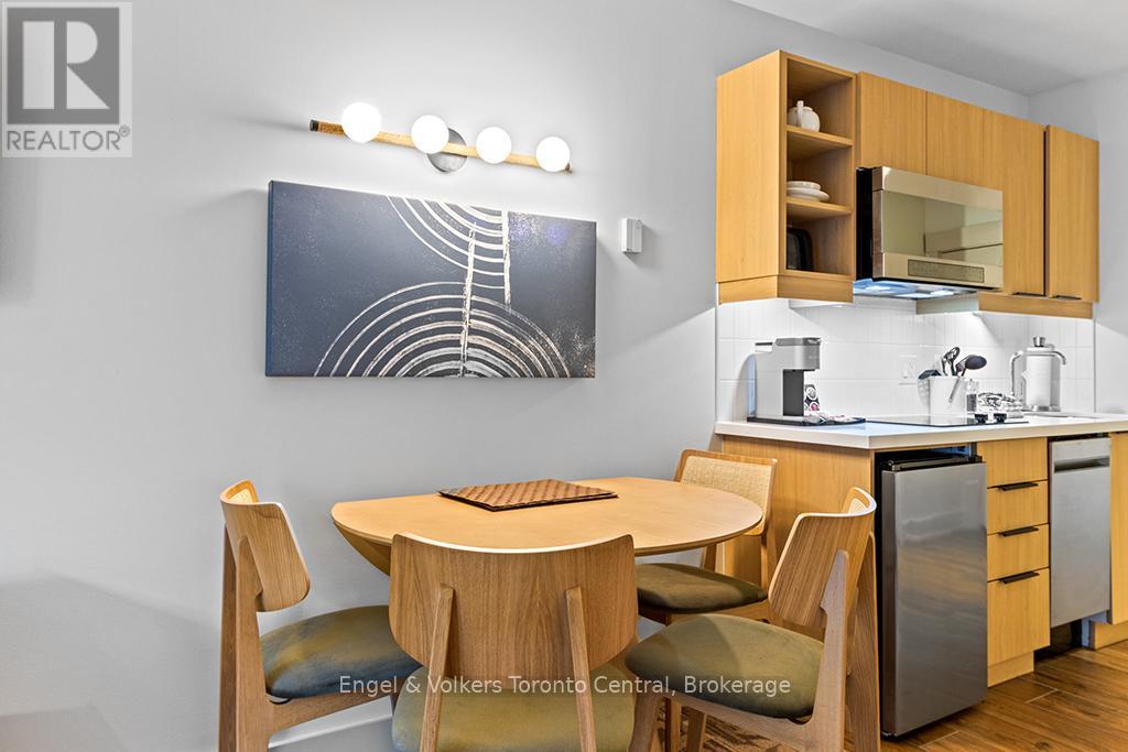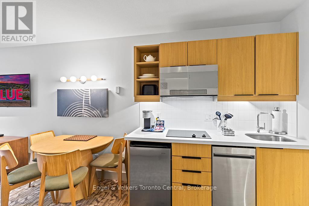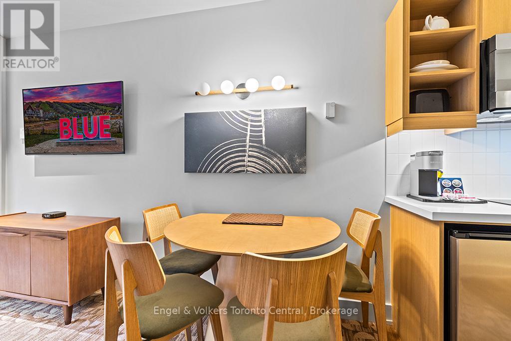 NEWLY REFURBISHED MOSAIC BACHELOR RESORT CONDOMINIUM - Located at the base of the ski slopes in Ontario's most popular four-season resort; Blue Mountain Village, this luxurious suite sleeps 4 (queen bed and pull-out couch) and is being sold fully furnished. This freshly refurbished gorgeous resort condominium is equipped with a full kitchenette with two stove-top burners and makes the suite feel incredibly spacious. Enjoy the view of Water Street. Mosaic at Blue offers a year-round outdoor heated swimming pool, an over-sized free form year-round outdoor hot tub, sauna, fitness room, private owners lounge and two levels of heated underground parking. Blue Mountain Resort offers owners a full service rental program to help offset operating expenses while still allowing liberal owner usage. HST is applicable but can be deferred. 2% BMVA one-time entry fee is applicable. Condo fees include utilities. The suite was completely refurbished and completed December 2025. (id:64974)