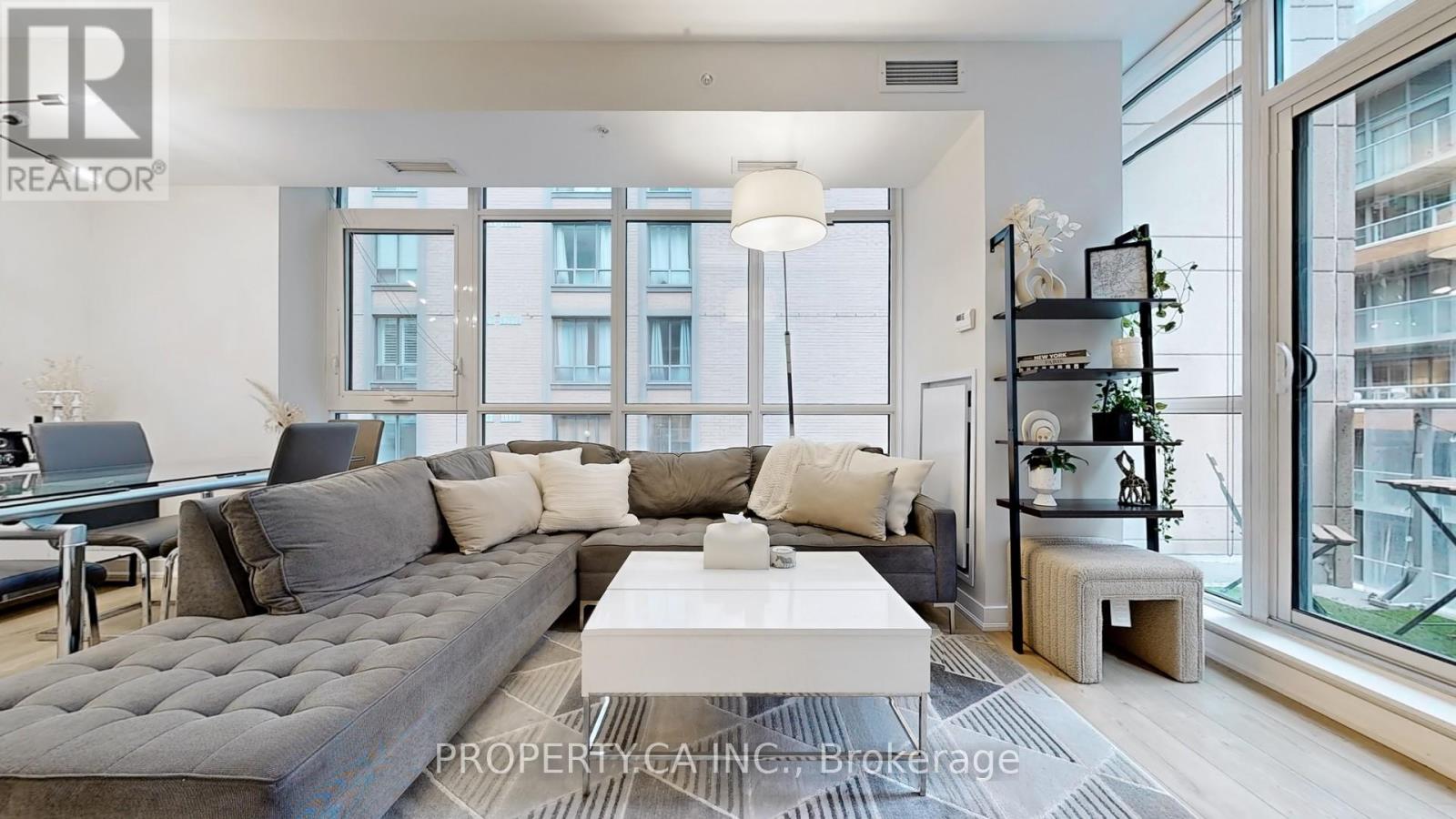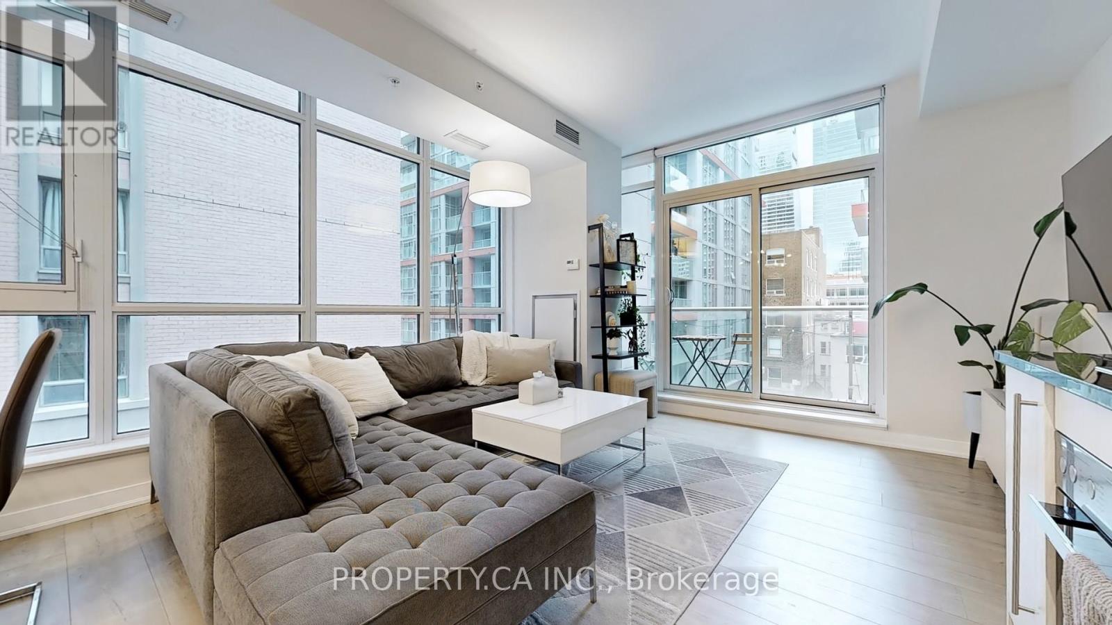 Welcome to this bright and modern 1 bed + den corner suite at the highly sought-after Studio 2 Condos in the heart of downtown Toronto. With 694 sq ft of wide, functional living space, this layout is rare and thoughtfully designed. Enjoy 2 private balconies, floor-to-ceiling windows, and an abundance of natural light throughout.Upgraded with new paint, custom lighting, and integrated appliances, this unit is move-in ready. The den is ideal for a home office or guest space. The kitchen features quartz countertops, sleek cabinetry, and a built-in cooktop for a seamless finish. Located right next to the stairs, you'll love the convenience of avoiding elevator wait times-perfect for busy urban living. Comes with 1 locker and underground parking. Situated in the heart of the Entertainment and Financial Districts, with a Walk Score of 99 and Transit Score of 100. Steps to TTC, the PATH, Queen St., King West, dining, shops, and more. Building amenities include 24-hr concierge, gym, sauna, party room, outdoor terrace, guest suites & more. (id:64974)