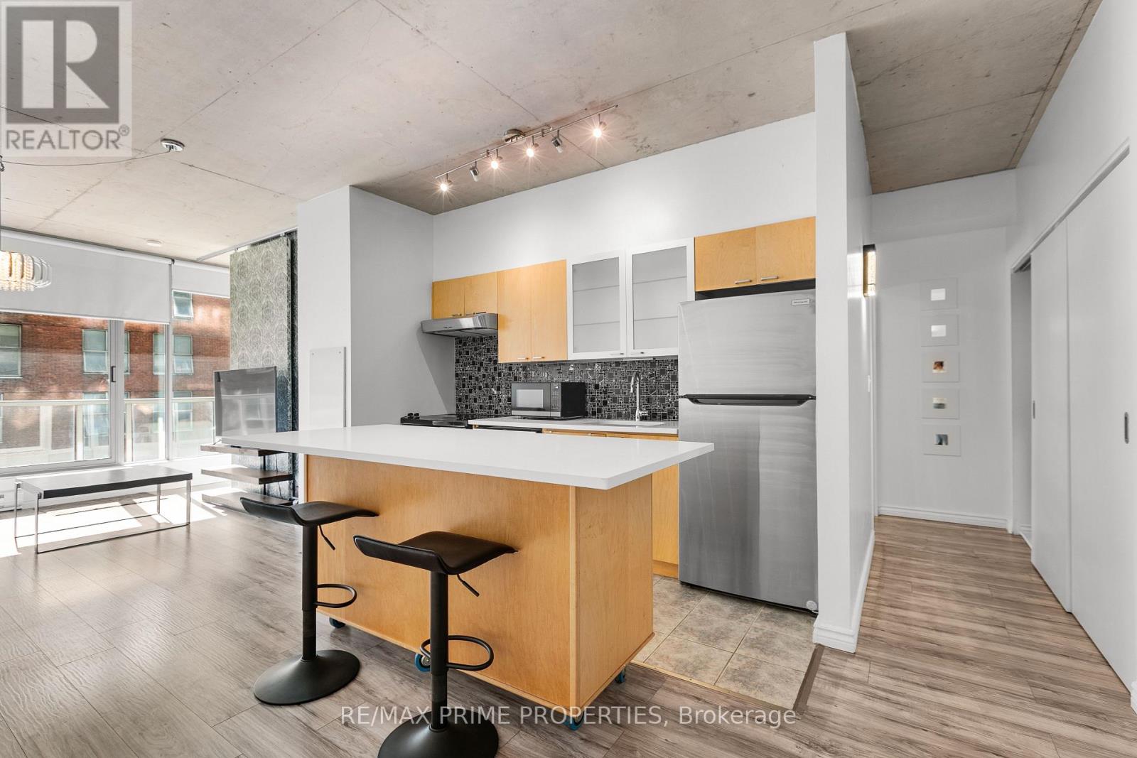 Welcome to this stylish 1 bed, 1 bath, 600 sq ft condo in East Market Towers by Urban Capital. Features an open-concept layout with industrial touches, full kitchen with island, Jack & Jill bathroom access, in-unit laundry. Building offers secure fob access, gym, party room, and storage locker. Underground visitor parking available with advance app reservation. Bike/scooter rack also available in underground parking, free of charge. Prime ByWard Market location, steps to restaurants, shops, and more. (id:64974)