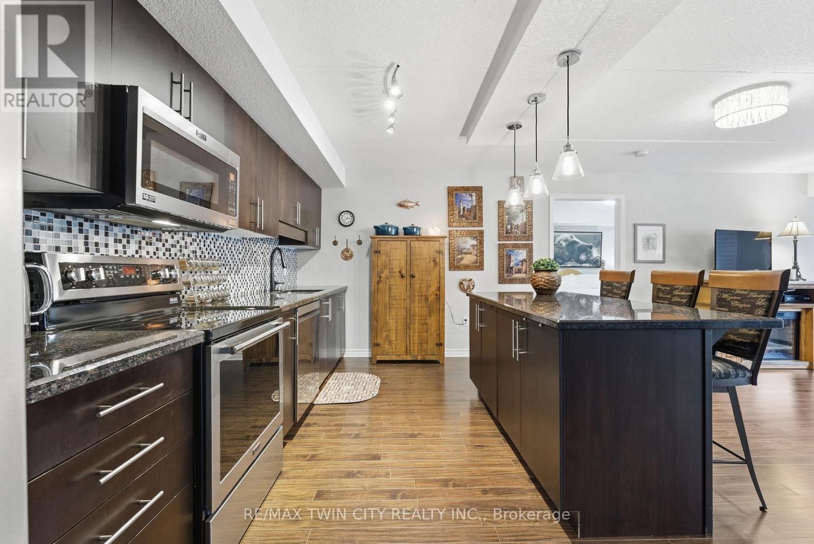 Welcome to Reflections, where elevated design and effortless living come together in this beautifully curated 2-bedroom, 2-bathroom residence. Featuring a spacious open-concept layout, this home is thoughtfully designed for both elegant entertaining and comfortable everyday living. The chef-inspired kitchen showcases granite countertops, upgraded stainless steel appliances, and a large island with seating - a striking focal point and the perfect space to gather. The living and dining areas flow seamlessly and extend onto a private 17' balcony, ideal for relaxing mornings or evening escapes. The primary suite offers a serene retreat with an ensuite bath, walk-in closet, and an additional closet offering ample storage. A second generously sized bedroom provides versatility for guests, family, or a sophisticated home office. Additional highlights include in-suite laundry, custom California shutters, a storage locker, and the rare convenience of two parking spaces - one underground and one surface. Residents enjoy access to premium amenities including a resident lounge, theatre room, and bike storage. An exceptional opportunity to own a stylish and well-appointed home in one of the area's most sought-after buildings (id:64974)
