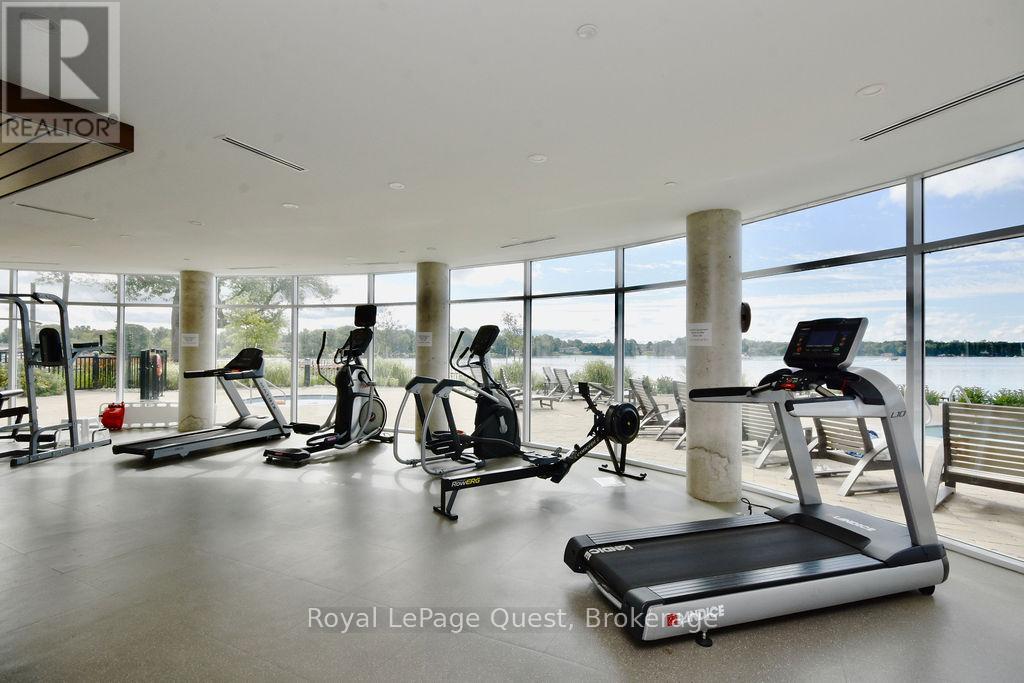 Enjoy easy lakeside living in this beautiful 1+den, 2-bathroom condo with unobstructed views of Lake Simcoe. Enjoy barbecuing or a fire table on your own spacious balcony with gas hookup. The windows fill the space with natural light and showcase stunning sunsets over the water, something you'll never get tired of.The open-concept layout feels comfortable and welcoming, with a flexible den that works well as a home office, guest space, or quiet retreat. Two full bathrooms (1 ensuite) add everyday convenience, and in-suite laundry makes daily living effortless.The building offers a fantastic range of amenities, including a fitness centre, outdoor pool and hot tub, indoor sauna, movie room, library, games/pool room, and a party and event space complete with a communal kitchen that's perfect for hosting large gatherings. The rooftop terrace is a true highlight, offering beautiful views of the lake and the perfect spot to relax or enjoy an evening sunset. Located just minutes from downtown Orillia, you're close to local shops, restaurants, and cafes, with nearby parks, walking and cycling trails to enjoy year-round. The condo also includes an underground parking spot and a storage locker, and visitor parking adding extra convenience and peace of mind. Optional boat slip rental available. Whether you're downsizing, ready for low maintenance living or wanting a cottage getaway, this is truly a wonderful opportunity to enjoy waterfront views, great amenities, and a resort-style living close to everything Orillia has to offer. (id:64974)