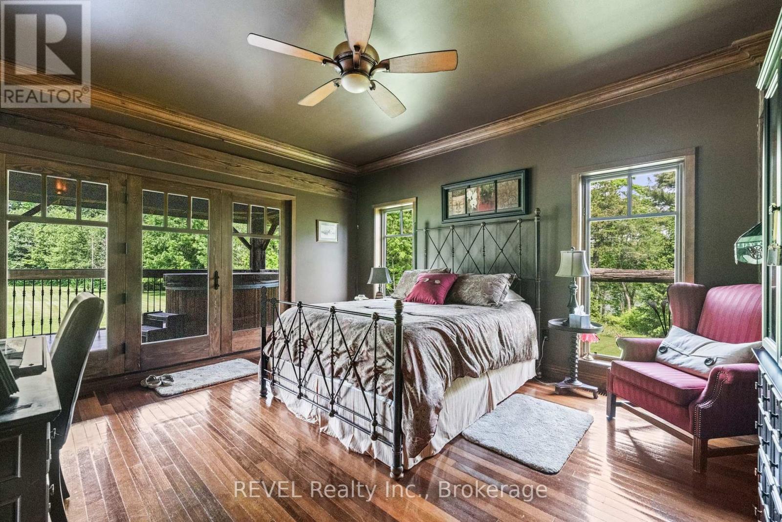 Welcome to 3111 Faywell Road situation in the quaint town of Fonthill. Once known as the 1896 "Old SeedBarn" this country barn style home has been reclaimed and rebuilt on this 17 acres parcel of land that boasts walking trails, a private waterfront pond, a long winding driveway and a golfing green. With nearly 1200 feet of Lake Gibson waterfront, enjoy your coffee with morning waterfront views on your wraparound covered porch and veranda. Make your way inside, the main features a stunning open concept dinning, living and kitchen area with nearly 17 foot ceilings. Custom wainscotting and panels cover every inch of this character home. With exposed beam construction you are able to take in the detailed craftsmanship of this build.Primary bedroom, ensuite and custom walk in closet conveniently located on the main level. Make your way up the staircase to the loft entertainment area with a wet bar. Additionally you will find another bedroom and full bathroom. The home features nearly 10,000 sq/ft; 2550 sq/ft of finished living space, 2400 sq/ft drive in basement, three car garage and additional 4661 sq/ft of constructed spaces. The lower level features a workshop, entertainment area and plenty of space for the car enthusiast. Not to mention the three car attached garage with a second storey waiting for your finishing touches. (id:64974)