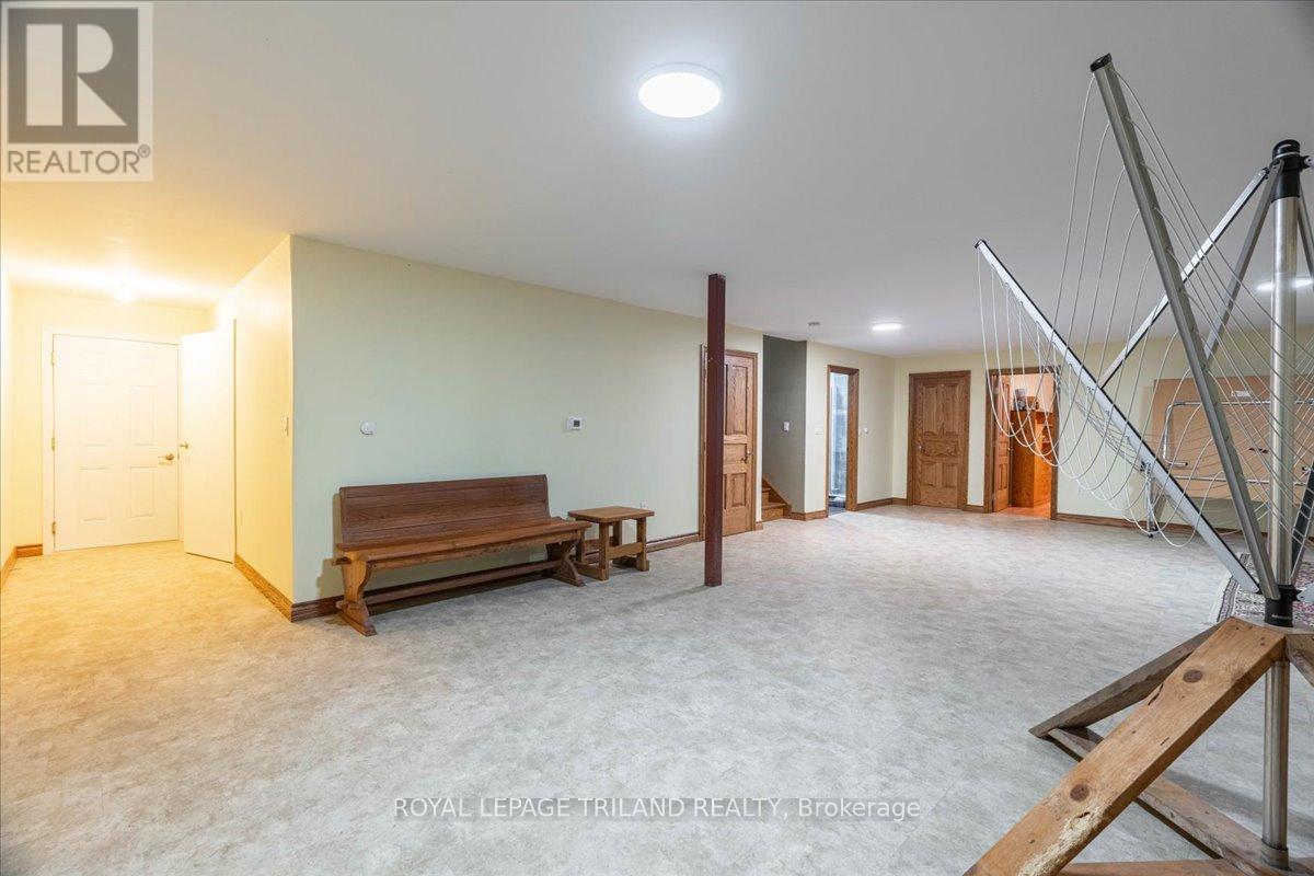 Built to last and designed to impress, this custom ICF-constructed home delivers exceptional energy efficiency, durability and privacy on a beautifully appointed 2-acre lot just minutes from Strathroy's amenities. The main living area makes a striking first impression with soaring vaulted ceilings and floor to ceiling rear windows that floor the space with natural light and frame your private grounds. The well- appointed kitchen features a functional peninsula and opens seamlessly to the dining area with garden door access to the outdoor patio. A dedicated office, 3 piece bath and laundry room with direct access to the 3 car garage round out the main floor. The oversized third bay is ideal for a trailer, workshop or extra storage and includes convenient basement access. Upstairs, four bedrooms offer quiet comfort, including a spacious primary suite with a private 5 piece ensuite and owners' balcony. A 4 piece family bath and bonus room above the garage - currently used as a media room - provide flexible living options for any lifestyle. The fully finished basement extends your living space with a large family room, two additional bedrooms, a 3 piece bath, cold storage and utility rooms. Outside the 2 acre lot is your private retreat - ideal for gardening, recreation or simply unwinding in seclusion. The detached 32' x 56' shop is a standout feature, offering serious potential for hobbyists, contractors or anyone needing substantial workspace and storage. A rare combination of craftsmanship, space and location. Properties like this don't come along often. (id:64974)