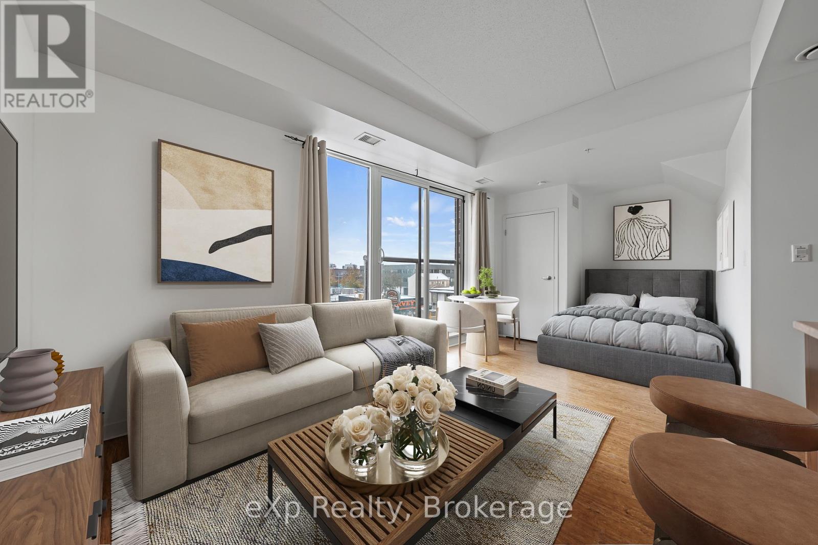 Location! Location! Location! This is your opportunity to own a fabulous studio apartment in a well maintained condo situated in the heart of Guelph. This move-in ready unit is bright, freshly painted and ready for its second owners. Boasting a well designed kitchen, appliances, in-suite laundry and owned underground parking spot. Located above Balzac's coffee and just steps to Guelph Farmer's Market, Market Square, Sleeman Centre, River Run Centre, Guelph Central GO Station, Royal City Park and more! Enjoy all of downtown Guelph's cafes, restaurants, entertainment, library, trails and parks. Just a 5 minute drive to the University of Guelph. This studio apartment is ideal for the first-time home buyer, professional, down-sizer, right-sizer or investor. It's the perfect location for walkability and ideal for commuting with its proximity to the GO Station and highways. This is a rare opportunity you don't want to miss! (id:64974)