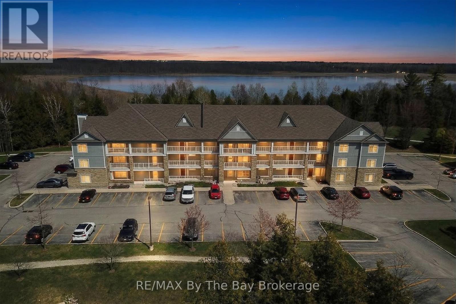 Welcome to Marlwood Estates, a quiet, established community in Wasaga Beach located beside Marlwood Golf & Country Club. This Greenbrier floor plan condo offers approximately 825 sq ft of finished living space and features a covered balcony with views of the private tree line, Marl Lake and the 8th hole of the golf course-a perfect place to relax and enjoy the peaceful surroundings. The 1 bedroom, 1 bathroom unit features an open concept kitchen with granite countertops, breakfast bar, and stainless steel fridge, stove, and dishwasher. A convenient in-suite laundry area with stackable washer/dryer and additional storage adds to the functionality of the space .Ideally situated at the end of a quiet loop with no through traffic, this unit also includes two deeded parking spaces. Located close to east-end shopping, restaurants, the new Wasaga Beach arena and library and the main end beach area. Floor Plan available under the 'Documents' tab. (id:64974)