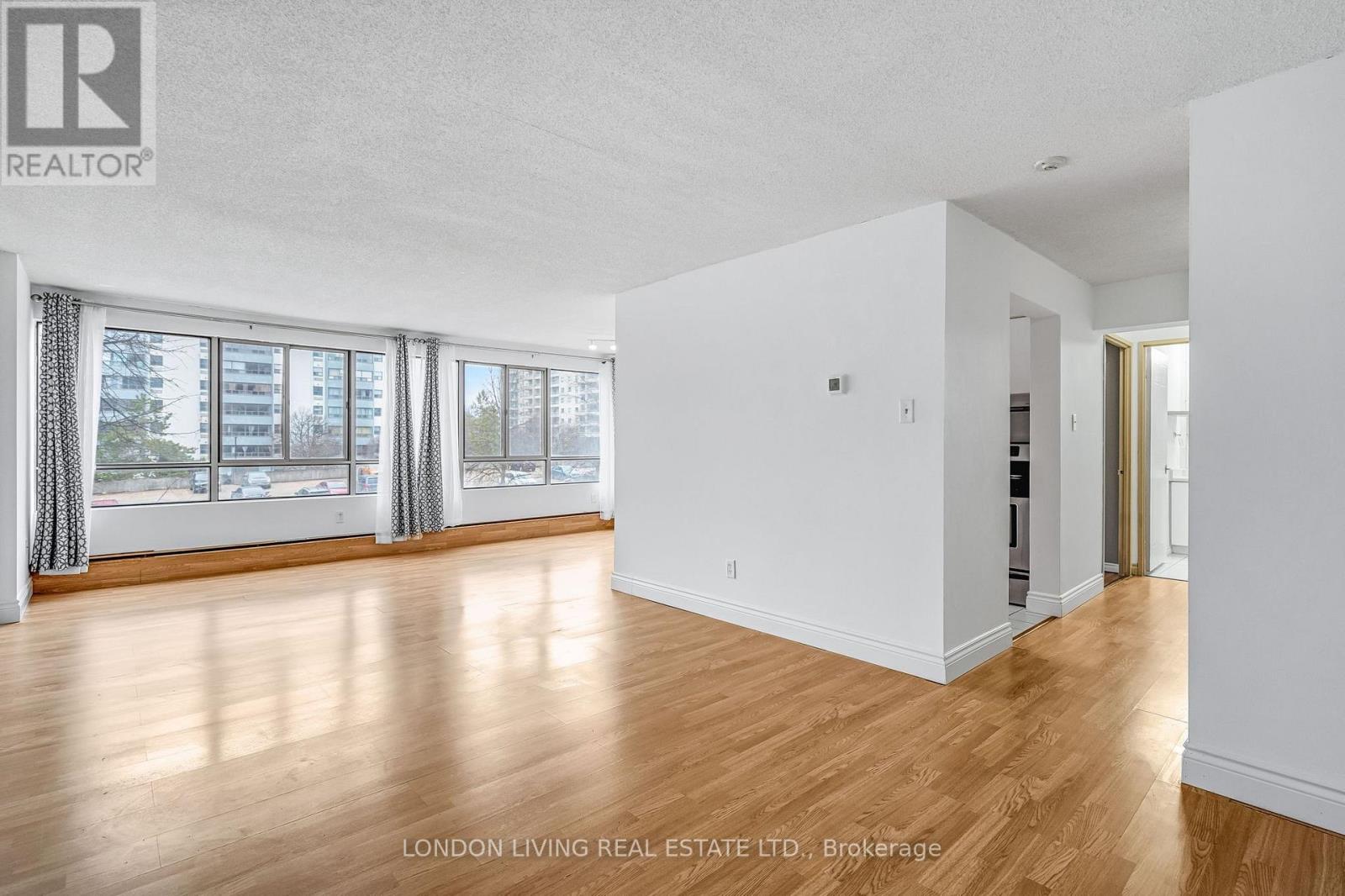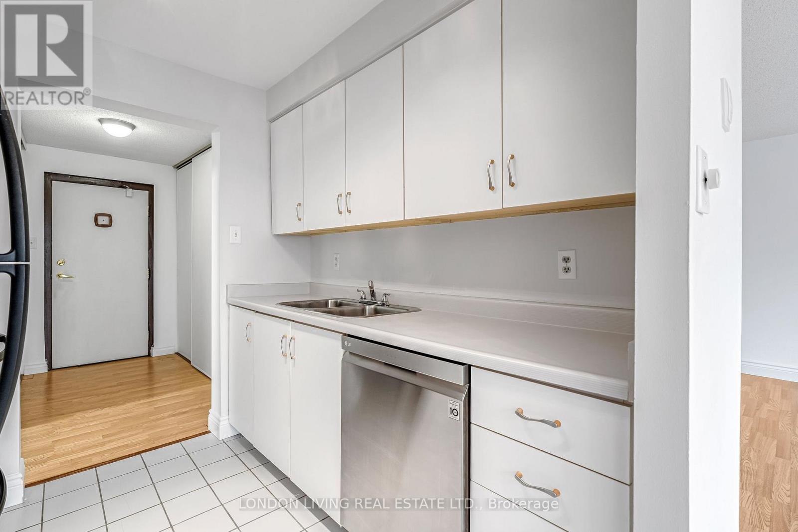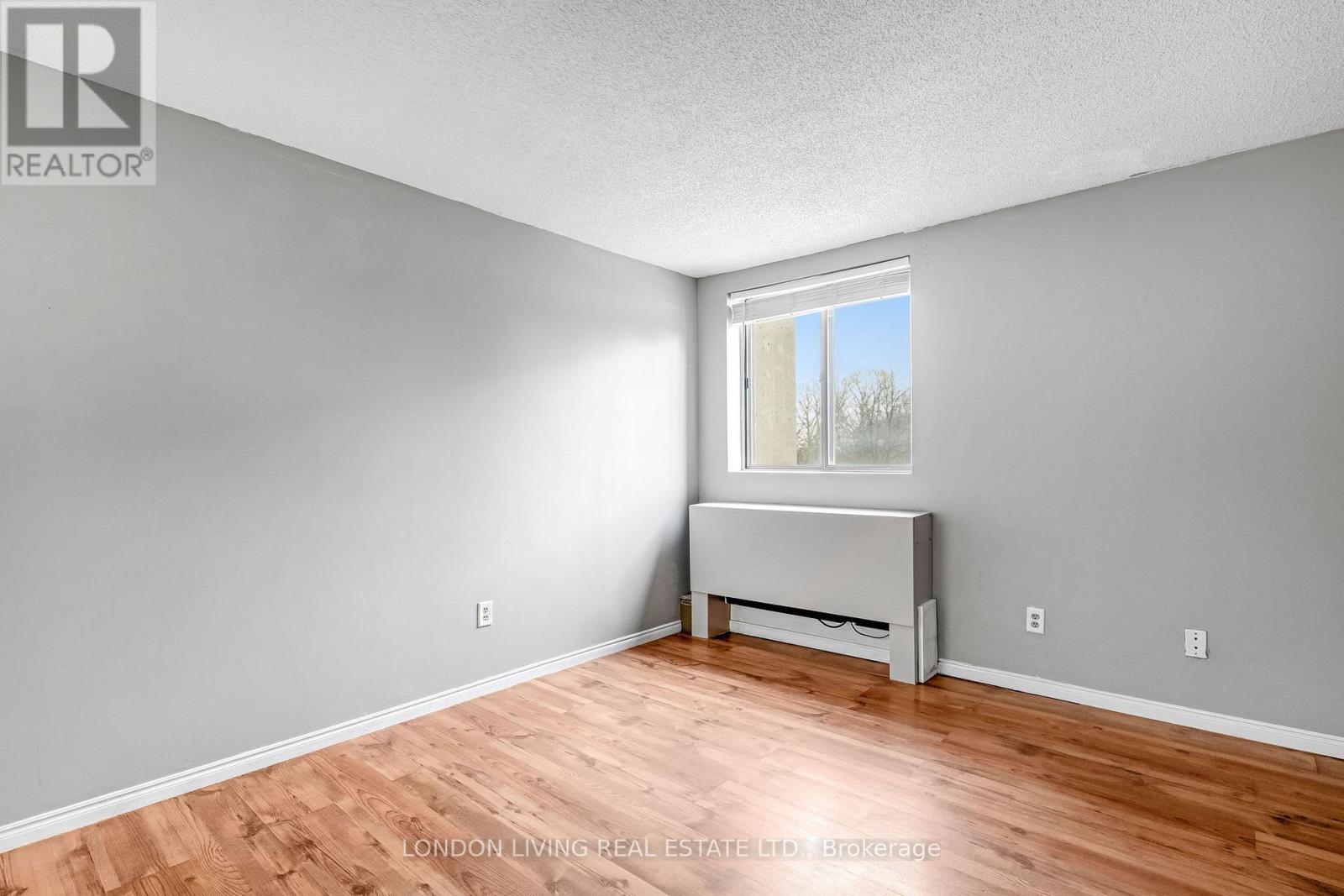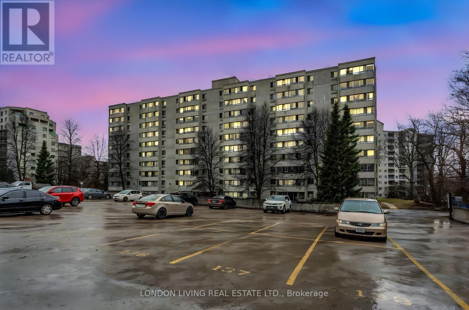 Premium location. Third floor immaculate one bedroom condo with spectacular view of gorgeous sunsets! Entire west wall of windows is truly breath taking! You will be impressed that you can enjoy amenities with a view like this at this price! Windows open to allow gentle breezes! Neutral decor throughout this very spacious open concept unit. Comes with good storage and large rooms. Note in unit laundry. Lots of open parking and underground is at no extra charge based on availability. A great building in great condition and in a superb location with bus to UWO or downtown at the door! Party/activity room. Note that water is included in very reasonable condo fees. Five minutes to downtown and take minutes to Cherry Hill Mall. Excellent value here! (id:64974)