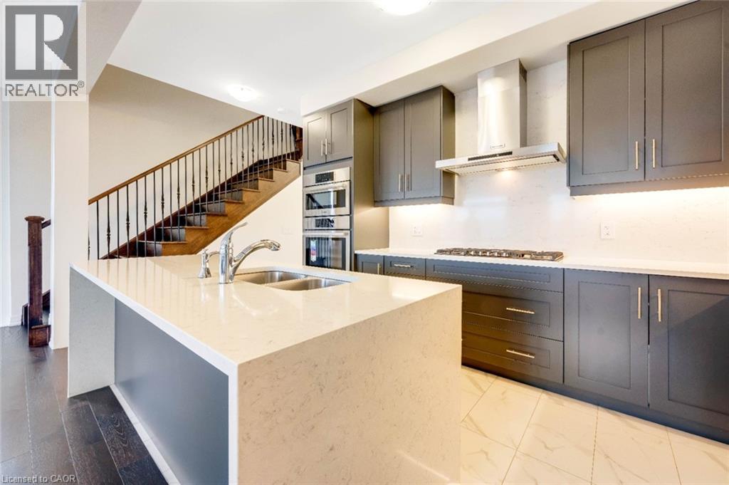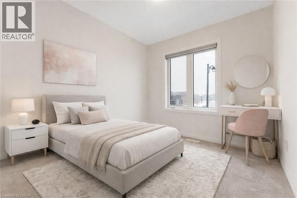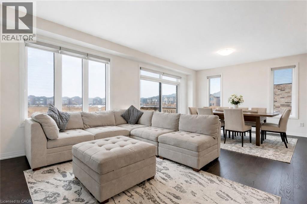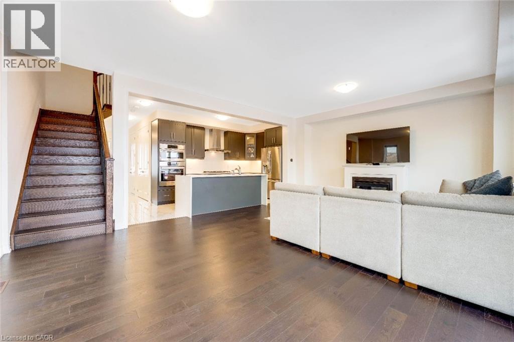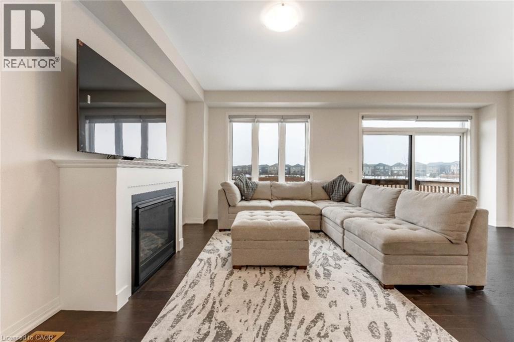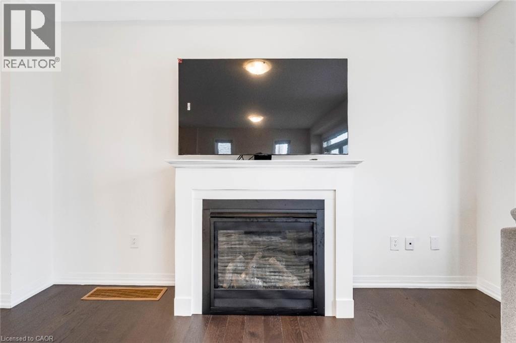 Experience modern living in this beautifully upgraded 2023 home, featuring over $100K in premium finishes. Offering 3 spacious bedrooms, 2.5 bathrooms, and a bright, functional layout, this home is perfect for families. Enjoy an east-to-west orientation with abundant natural light, a sleek kitchen with quartz waterfall island and high-end appliances, and a cozy living space with a stylish fireplace. The primary suite includes a walk-in closet and a luxurious ensuite. Backyard views of a serene pond provide added privacy, while the basement offers future potential. Conveniently located near Highway 401, shopping, parks, and amenities—this move-in ready home blends comfort, style, and convenience. (id:64974)
