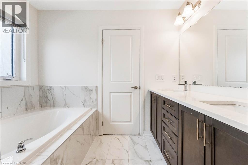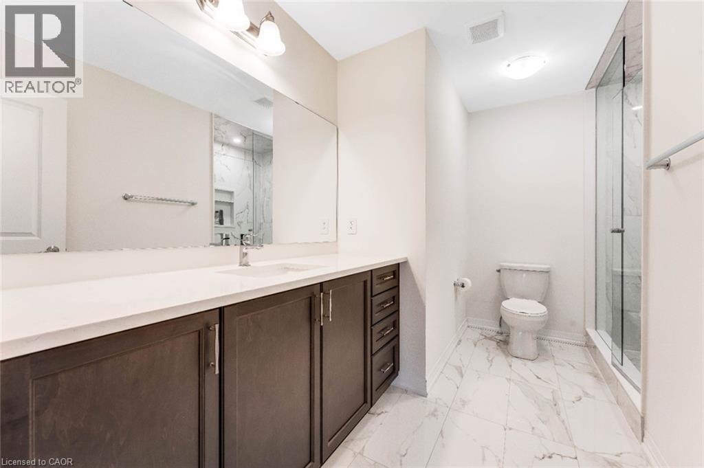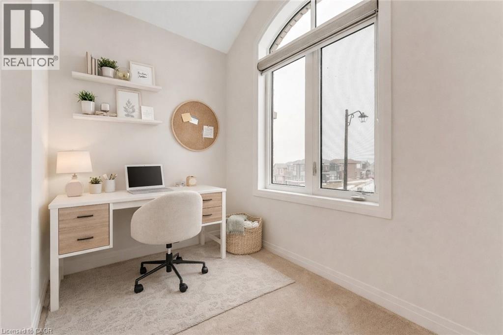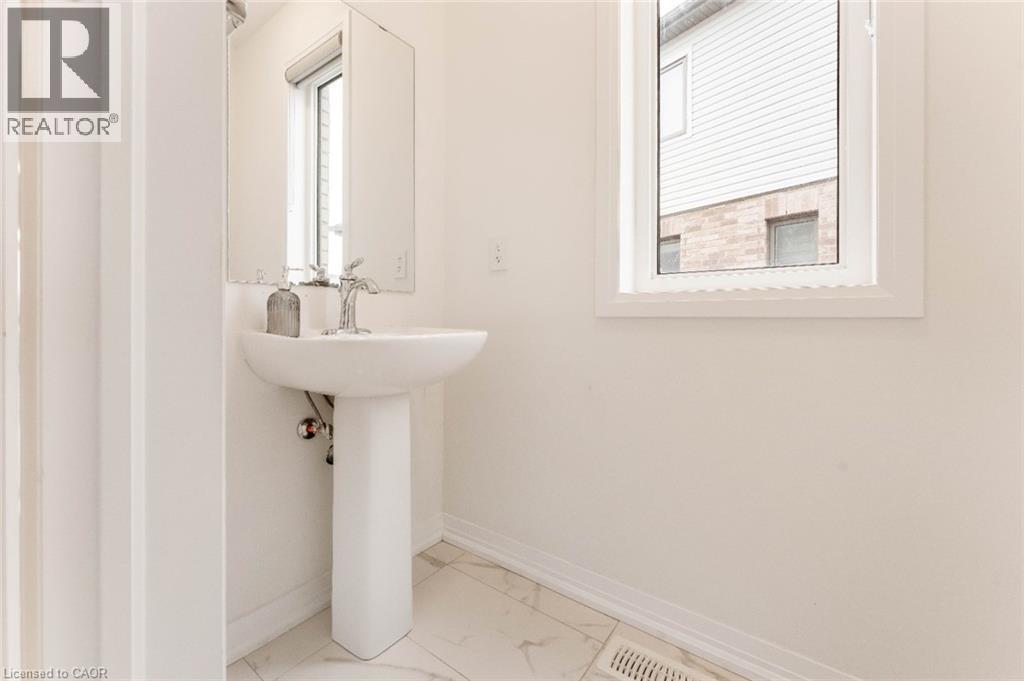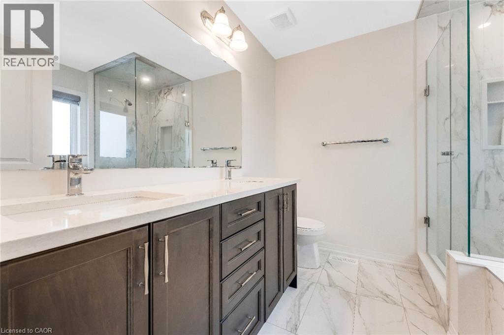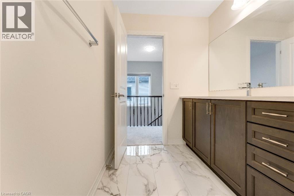 Experience modern living in this beautifully upgraded 2023 home, featuring over $100K in premium finishes. Offering 3 spacious bedrooms, 2.5 bathrooms, and a bright, functional layout, this home is perfect for families. Enjoy an east-to-west orientation with abundant natural light, a sleek kitchen with quartz waterfall island and high-end appliances, and a cozy living space with a stylish fireplace. The primary suite includes a walk-in closet and a luxurious ensuite. Backyard views of a serene pond provide added privacy, while the basement offers future potential. Conveniently located near Highway 401, shopping, parks, and amenities—this move-in ready home blends comfort, style, and convenience. (id:64974)