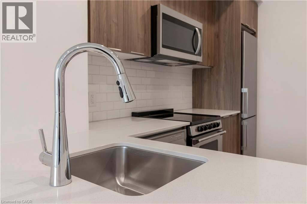 Welcome to Moda, a boutique residence bringing refined, modern living to the heart of Waterloo. This brand-new 1 bedroom, 1 bathroom suite offers 502 sq. ft. of thoughtfully designed interior space plus a 45 sq. ft. private balcony, creating a bright and functional home with seamless indoor-outdoor flow.The well-planned layout features a spacious kitchen with quartz countertops, stainless steel appliances, and sleek cabinetry, opening into a comfortable living area filled with natural light. The bedroom is generously proportioned with excellent closet space and privacy, while the modern bathroom and in-suite laundry add everyday convenience. Clean architectural lines and efficient design make this suite feel both open and inviting. Ideally situated near shopping, dining, transit, parks, and universities, Moda delivers a connected urban lifestyle in one of Waterloo’s most convenient locations. Live connected. Live contemporary. Live MODA (id:64974)