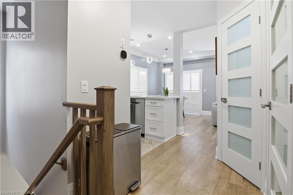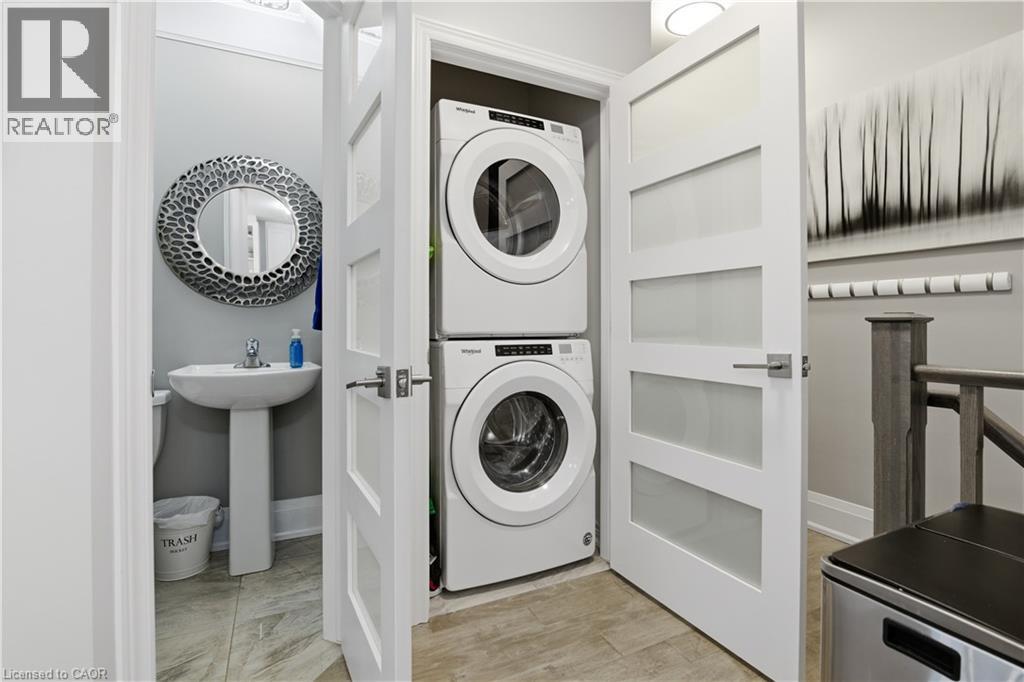 Absolutely stunning 3 bed, 2 bath townhome nestled on a premium corner lot in the highly sought after community of Waterdown! This beautifully maintained home shows like new and is loaded with upgrades throughout — California shutters, new light fixtures, and freshly painted top to bottom, No Carpet. The modern kitchen features stainless steel appliances, and the in-suite stacked washer & dryer adds everyday convenience. Enjoy the privacy of a corner lot , plus one of the few units in the complex with an oversized driveway that fits 2 full-sized vehicles back-to-back — in addition to your single-car garage with inside entry! Step out onto your gorgeous south-facing balcony and take in the beautiful views. Minutes from downtown Waterdown, Burlington, and Highway access! This move-in ready gem is sure to go quick! (id:64974)