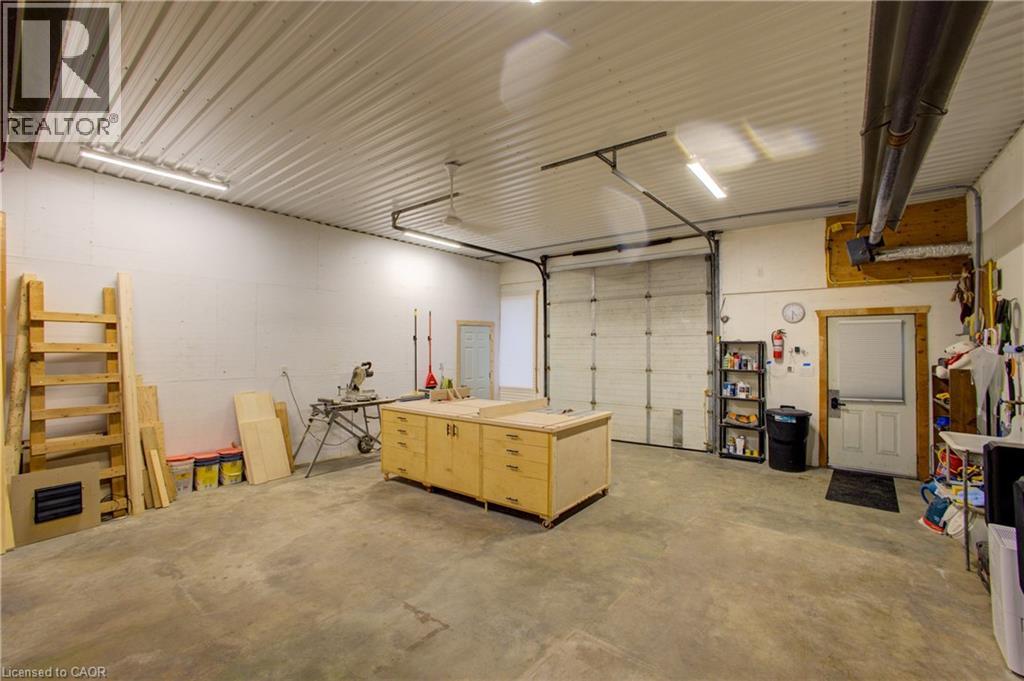 Tired of city living? Looking for a tranquil setting with a unique home? This could be the perfect home for you! This Scandinavian style log home is situated well away from the road for privacy on a beautiful, 11 acre lot with 360 degree scenic views. The home features a grand, open concept style with high vaulted ceilings, a skylight and upper windows providing lots of natural light, huge wood beams and walls, a spacious main floor layout with tiled flooring, a modern kitchen with island and Stainless appliances, and a full 4 piece bathroom. The second level is a huge loft with the Primary Bedroom and ensuite, and plenty of space for the workout and office area too! The basement has 3 additional bedrooms, a generous storage room, utility room, and a REC room. The home has hydronic in-floor heating for your comfort. For the car enthusiast or handyman, outside, there is a 30 X 40 insulated & heated shop/garage with double 10Ft Doors (interior has been divided into a 680s.f. heated workshop which can hold 3 cars and a 420s.f. single car garage with a TESLA charger). The property has lots of mature trees, two spring fed ponds with a small dock to relax on in the evening, and space for your canoe or paddleboat. The setting is perfect for evening hangouts around the firepit or on the porch. There is a 5 acre fenced pasture in front – raise your own livestock or ride your ATV here, another 3 acres at the north end, a small shed and a barn with water and 2 paddocks in addition to the 2 paddocks behind the garage area. There are many possibilities with enough land to have your own hobby farm, grow your own crops and raise your own chickens and eggs if that lifestyle appeals to you. Location is conveniently just north of Mount Forest and is just off Hwy 6 but below the grade of the highway for complete privacy! This home has everything you could want – it has to been seen to really appreciate all it has to offer. Come visit and see for yourself!! (id:64974)