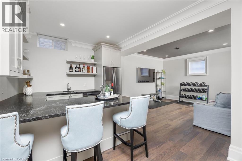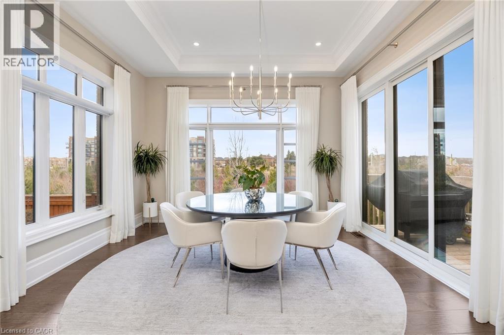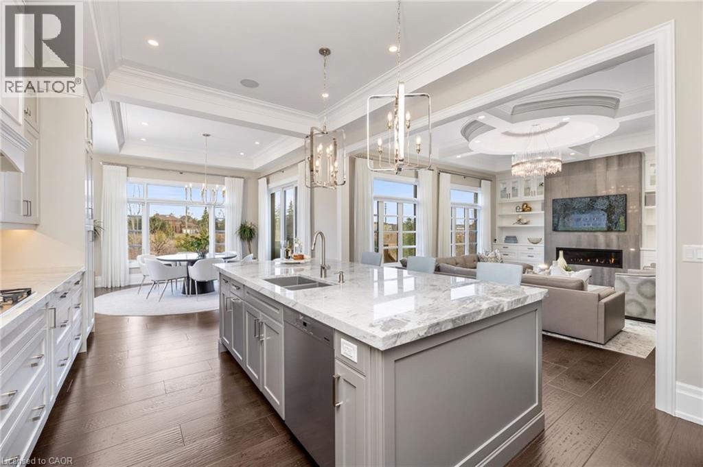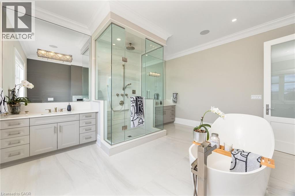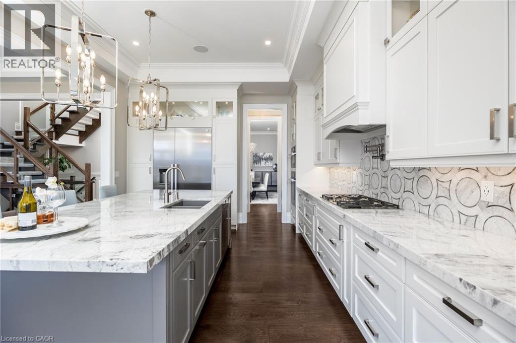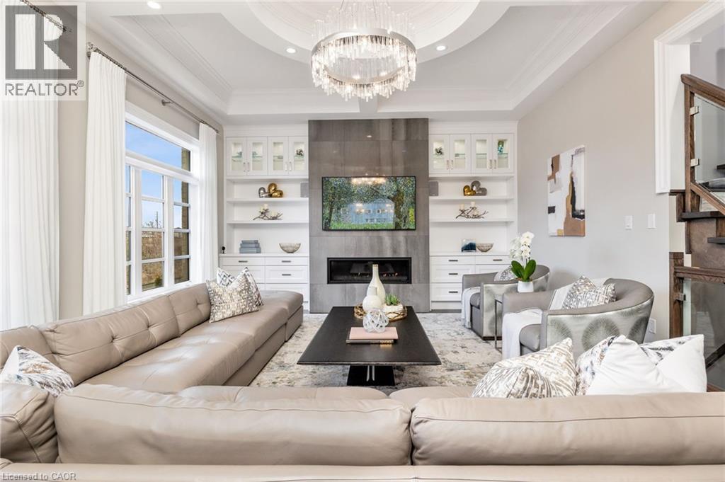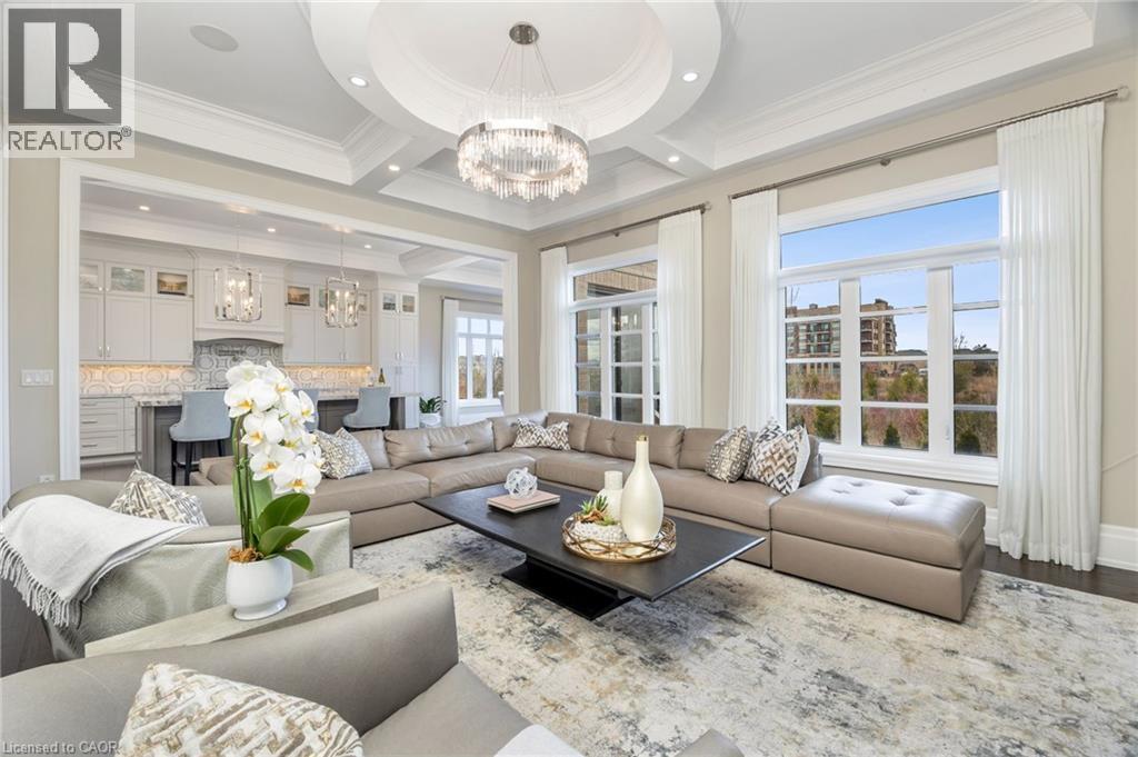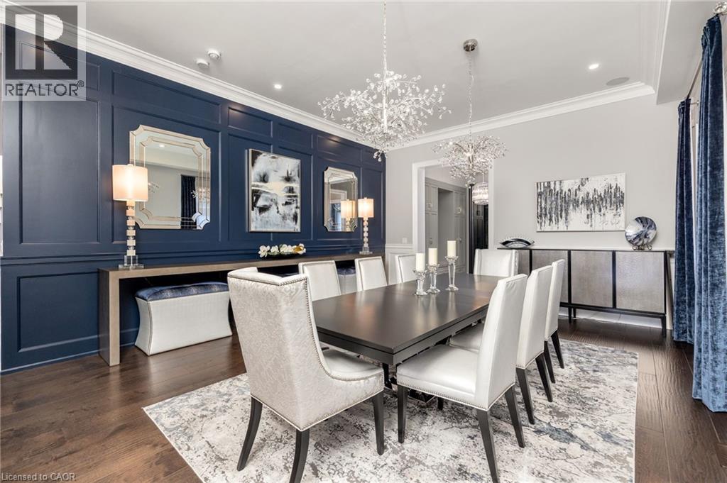 Welcome to this exquisite Fernbrook-built Rockefeller Elevation B model in Oakville's prestigious Glenorchy community. Offering over 3,800 sq. ft. of upgraded above-grade living space on a premium ravine lot, this home delivers true turnkey luxury.The main floor, professionally finished by Parkyn Design, boasts 11-ft smooth ceilings, porcelain tile, 11 baseboards, crown moulding, custom wainscoting, and designer accent walls. A chefs custom kitchen with double-stacked cabinetry opens to a panoramic breakfast/sunroom with breathtaking ravine views. The elegant family room features a built-in gas fireplace and custom shelving.A stunning floating glass staircase with skylight leads to a private office located between the main and second floors. The spa-like primary suite includes a walk-in closet, fireplace, and a luxurious ensuite. The second bedroom offers its own ensuite, east-facing windows, and a cozy bench. The third and fourth bedrooms share a beautifully appointed Jack & Jill bathroom. A convenient second-floor laundry adds to the functionality.The finished basement adds even more living space and features a home theatre with projection screen, a second kitchen, playroom, fifth bedroom, and a luxury bath complete with heated floors, steam shower, and sauna. Three oversized storage rooms provide ample space.Hundreds of thousands of dollars have been spent on upgrades throughout this meticulously maintained home. Located just steps to top-rated schools, scenic parks, trails, and the vibrant Uptown Core. (id:64974)