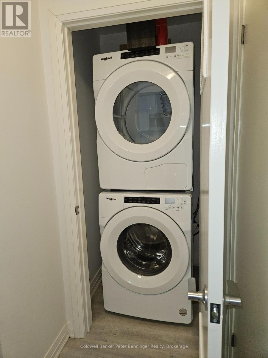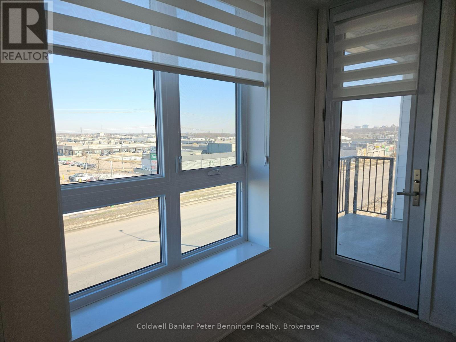 Start your day with morning sunshine and sunrise views in this east-facing 1 bedroom, 1 bathroom condo. Enjoy your coffee from the kitchen or private balcony as natural light fills the open-concept living space. Located in The Jake, this well-designed suite offers modern finishes, a contemporary kitchen, and in-suite laundry for everyday convenience. The building includes a comfortable resident lounge, secure bike storage, community mailboxes with a large parcel receiving area, and a modern Peloton fitness studio. Visitor parking and an electric vehicle charging station are also available. Ideally situated close to Starbucks, shopping, restaurants, the University of Waterloo, Wilfrid Laurier University, and the ION Light Rail Transit, making commuting and daily errands easy. One parking space is available for an additional $100 per month. Tenants pay hydro, water, and gas. (id:64974)
