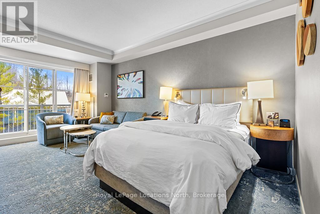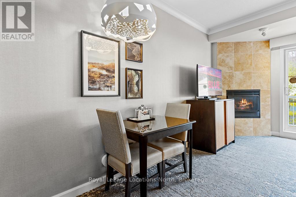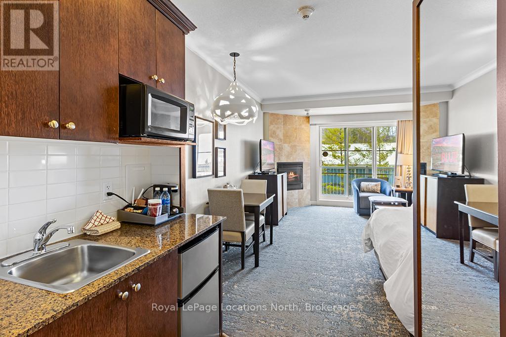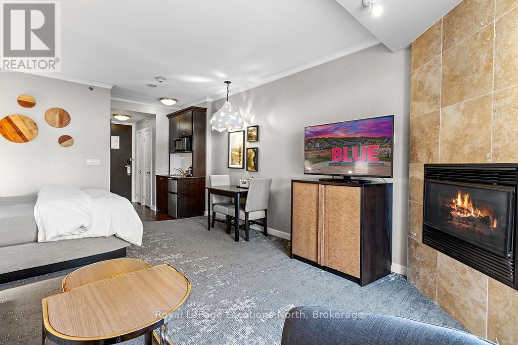 This beautifully refurbished bachelor suite with private balcony at Westin Trillium House offers stunning hillside views and serves as an ideal four-season cottage alternative. Fully furnished and turn-key, the suite features a kitchenette, dining area, cozy gas fireplace, pull-out sofa providing additional sleeping capacity, and a convenient in-suite owners' locker.Owners enjoy access to premium Westin amenities including valet parking, a year-round outdoor pool and hot tub, sauna, fitness centre, and pet-friendly accommodations. In-room dining is available from Oliver & Bonacini Café Grill located in the lobby, with additional dining, shopping, and entertainment just steps away in Blue Mountain Village.Surrounded by year-round recreation, the property is within close proximity to the Village Mill Pond, ski hills, scenic trails, golf courses, and mountain biking. A short drive provides access to Collingwood, Georgian Bay, Scenic Caves Nature Adventures, and the sandy beaches of Wasaga Beach.Ownership includes participation in a professionally managed rental program through Blue Mountain Resorts, offering income potential while allowing for personal use. Additional features include a private owners' ski locker, bike storage, and all-inclusive condo fees covering utilities and insurance. HST is applicable to the purchase price but may be deferred. BMVA fees apply, including a one-time membership fee of 2% plus HST of the purchase price and an annual fee of $1.08 plus HST per square foot. (id:64974)