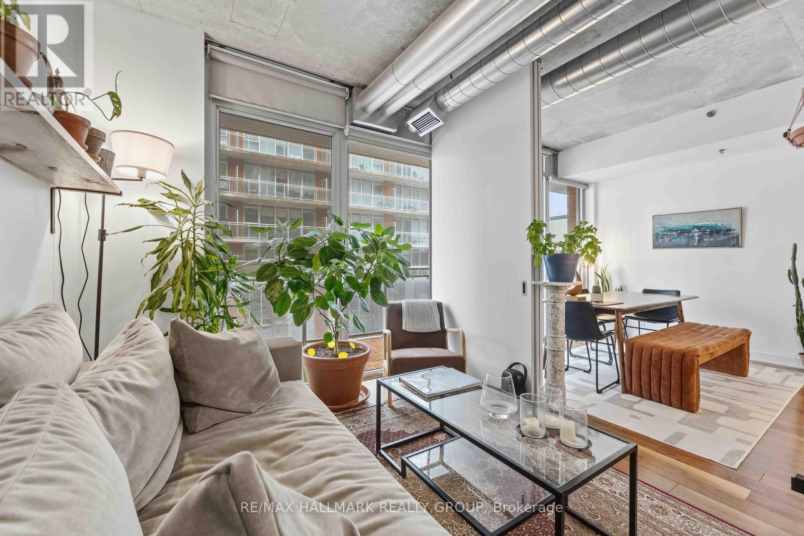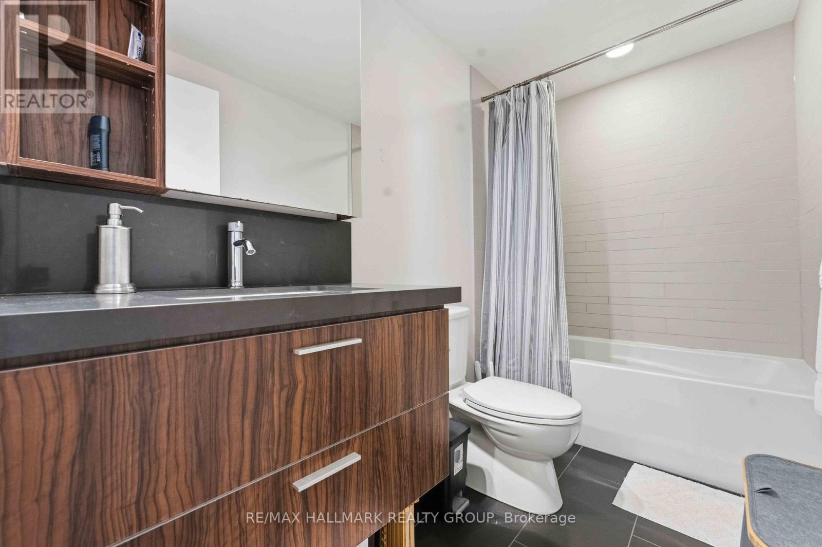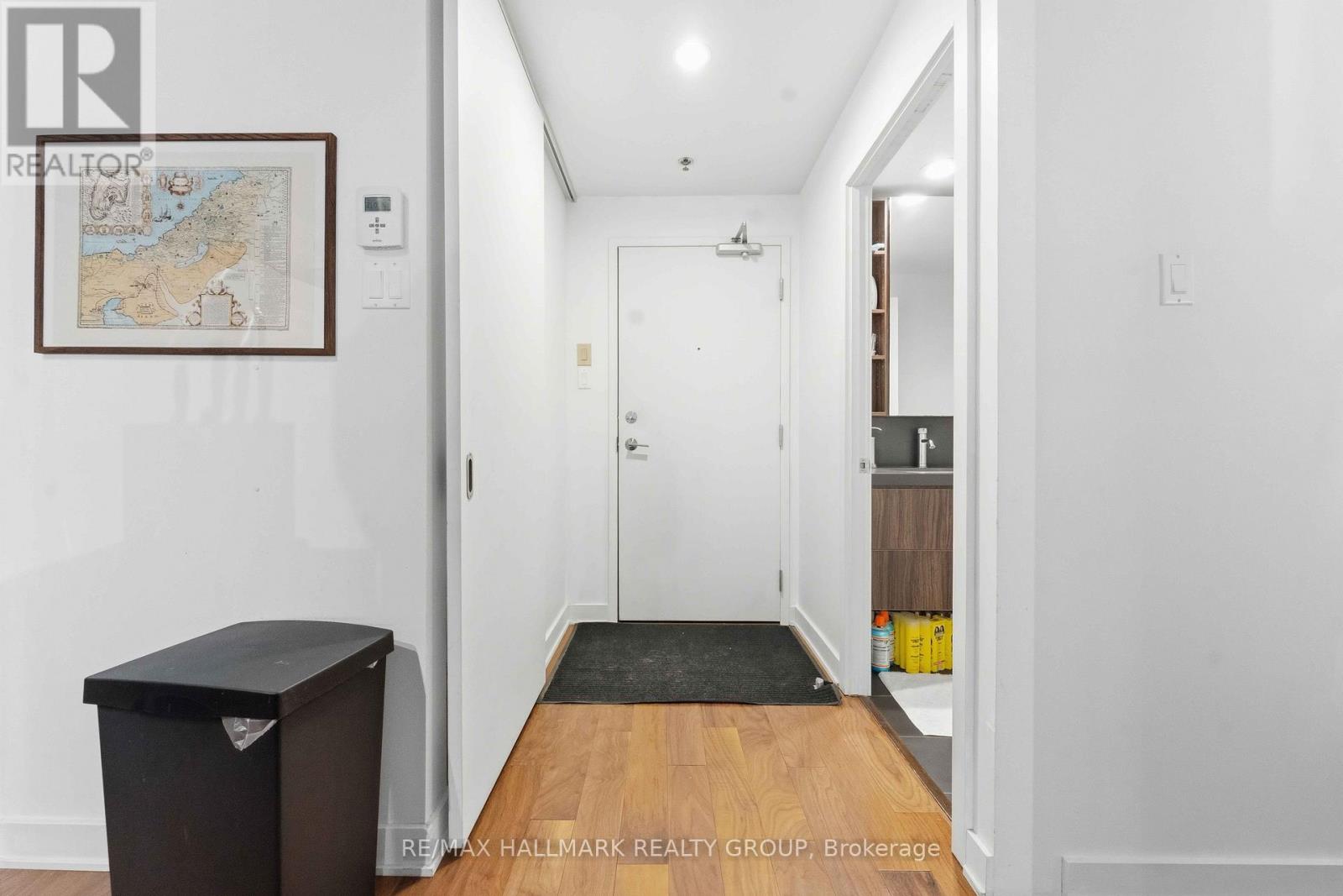 Welcome to Unit 313 at 360 McLeod Street - a stylish and functional 1 bedroom + den condo perfectly located in the heart of Centretown. This thoughtfully designed unit offers an open-concept layout with modern finishes throughout. The sleek kitchen features contemporary cabinetry, stone countertops, and stainless steel appliances, seamlessly flowing into the bright living and dining area - ideal for both everyday living and entertaining. The primary bedroom provides a comfortable retreat, while the versatile den is perfect for a home office, guest space, or cozy reading nook. Enjoy the convenience of in-unit laundry. Step outside to your private balcony - the perfect spot to unwind and take in the vibrant downtown surroundings. Located just steps from shops, restaurants, cafes, parks, and transit, this unbeatable location offers the ultimate urban lifestyle. Condo Fees include heat, water, central a/c, and building insurance. Currently tenanted, with possession available after June 1 - making it a great opportunity for both investors and future homeowners alike. (id:64974)