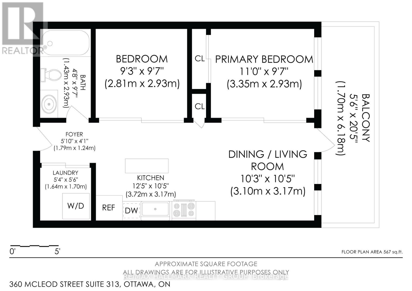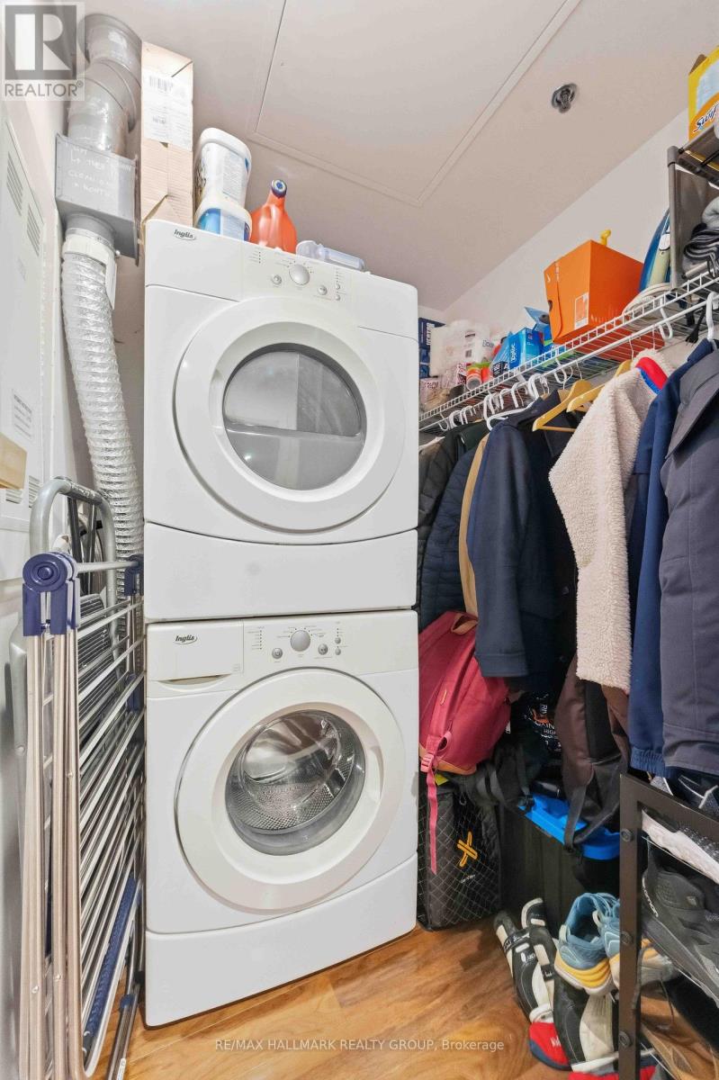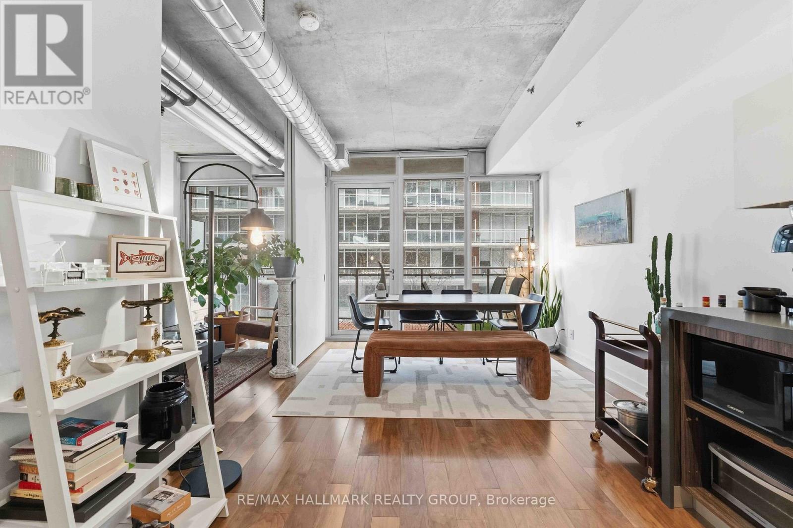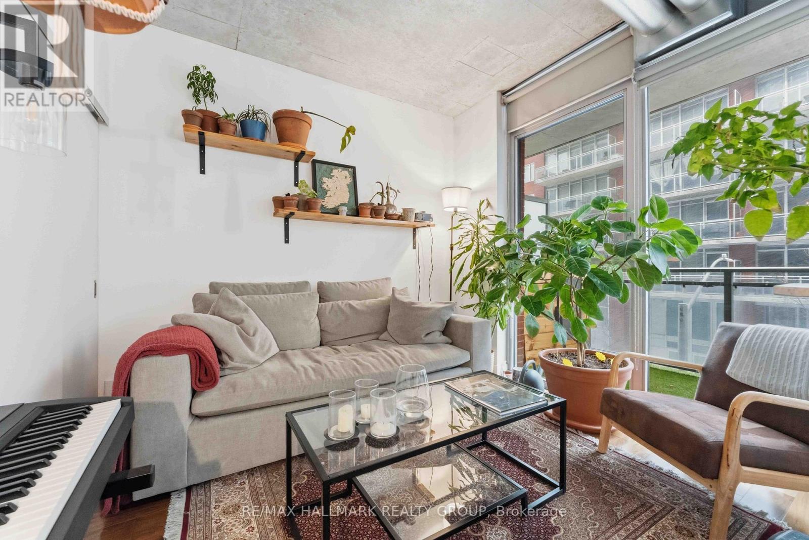 Welcome to Unit 313 at 360 McLeod Street - a stylish and functional 1 bedroom + den condo perfectly located in the heart of Centretown. This thoughtfully designed unit offers an open-concept layout with modern finishes throughout. The sleek kitchen features contemporary cabinetry, stone countertops, and stainless steel appliances, seamlessly flowing into the bright living and dining area - ideal for both everyday living and entertaining. The primary bedroom provides a comfortable retreat, while the versatile den is perfect for a home office, guest space, or cozy reading nook. Enjoy the convenience of in-unit laundry. Step outside to your private balcony - the perfect spot to unwind and take in the vibrant downtown surroundings. Located just steps from shops, restaurants, cafes, parks, and transit, this unbeatable location offers the ultimate urban lifestyle. Condo Fees include heat, water, central a/c, and building insurance. Currently tenanted, with possession available after June 1 - making it a great opportunity for both investors and future homeowners alike. (id:64974)
