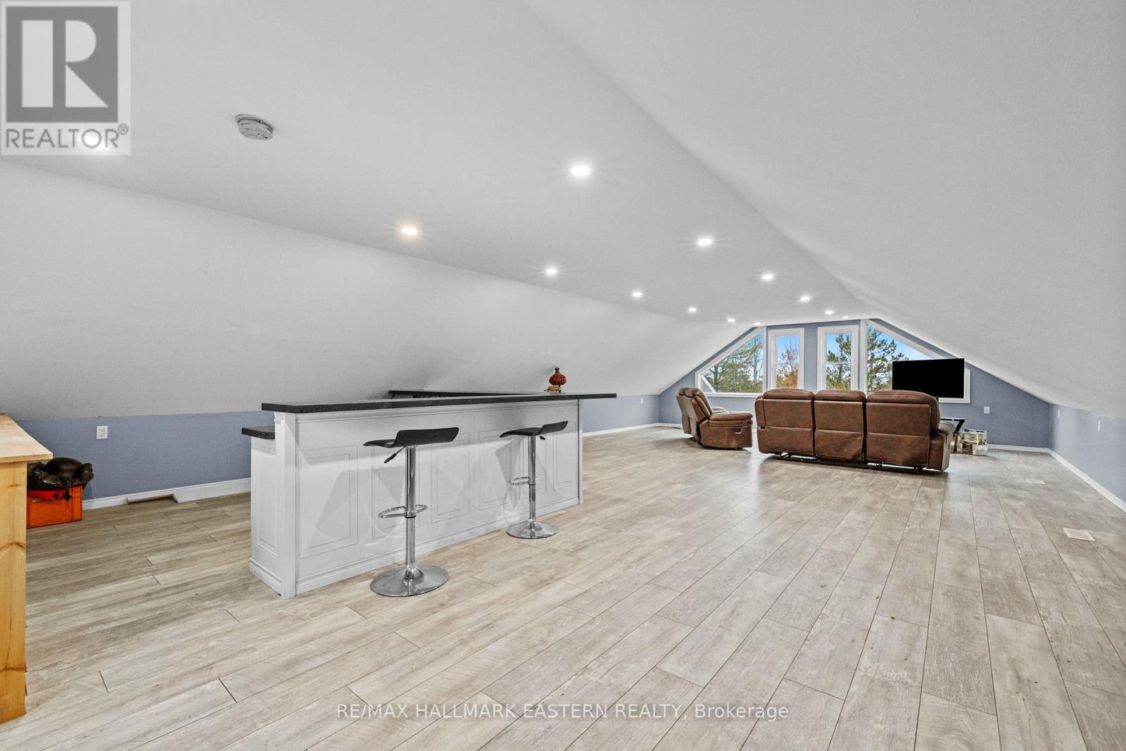 Set on approximately 1.79 acres in the rolling countryside of Cramahe Township, this well-appointed rural property offers privacy, flexibility, and functionality just 15 minutes north of Colborne and Highway 401. Surrounded by open farmland and scenic views, the setting delivers a peaceful country lifestyle while remaining conveniently connected to major routes. The home offers over 2,400 sq. ft. of finished living space, including a fully finished lower level and a finished upper loft over the detached garage. The open-concept main floor features cathedral ceilings, generous natural light, and a seamless walkout to a covered porch overlooking surrounding fields-ideal for entertaining or quiet outdoor living. A double attached garage provides convenient direct access to both the main floor and lower level. Above the detached workshop, a spacious finished loft is currently configured as a games room/bar with its own private deck, and with the addition of plumbing could be easily adapted into a self-contained in-law or guest suite. The property also includes a standout large detached workshop, fully insulated and heated-perfect for hobbyists, contractors, storage, recreational equipment, or a home-based business. (id:64974)
