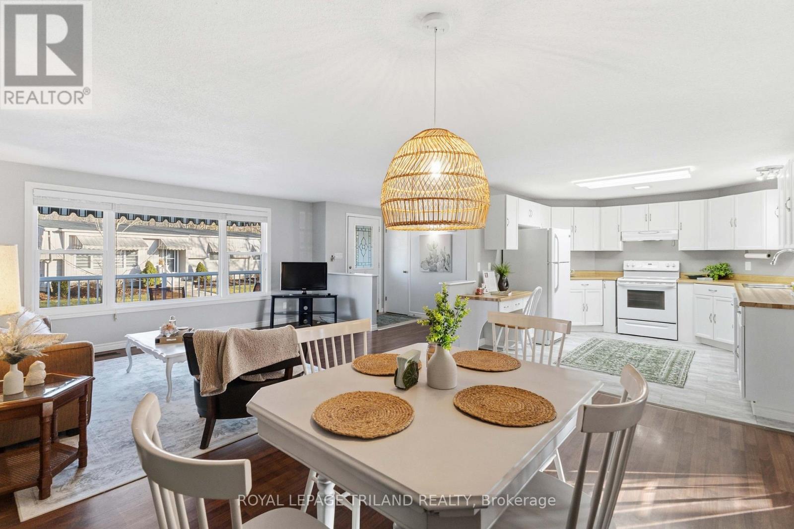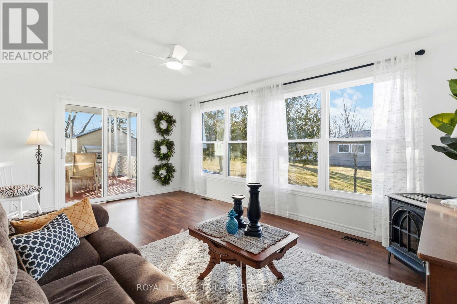 Discover the perfect balance of COMFORT AND COMMUNITY in this beautifully updated, site-built bungalow, nestled on a quiet street within the prestigious Grand Cove land lease community. From the moment you arrive, the exceptional curb appeal-highlighted by manicured gardens and a welcoming front patio. Inside, the popular Newcastle II floor plan offers a seamless, sun-drenched flow, featuring a bright U-shaped kitchen with a skylight and white cabinetry that opens into a spacious living/dining area framed by a large picture window. Retreat to the rear family room to cozy up by the gas fireplace, or step through the patio doors to enjoy your private, covered backyard space, which benefits from an extra buffer of privacy provided by a tranquil green belt. Designed with accessibility in mind, the home features a primary suite with a walk-in closet and ensuite with laundry, plus a secondary bedroom perfect for visiting family or can act as an office. Located just a short stroll from the sandy shores of Lake Huron and the vibrant amenities of downtown Grand Bend, this home offers more than just a place to live-it offers a lifestyle complete with a heated saltwater pool, tennis courts, a woodworking shop, and nature trails. With a monthly fee of $964.37 covering both land lease AND taxes, your only job is to move in and enjoy the world-famous sunsets. A Life of Leisure in Grand Cove Estates. This community offers a club house, heated pool, gym, extra storage facilities, a workshop. For those that wish to participate there is a bustling social calendar including BINGO, wine and cheese parties, theme parties, card and game nights etc. (id:64974)