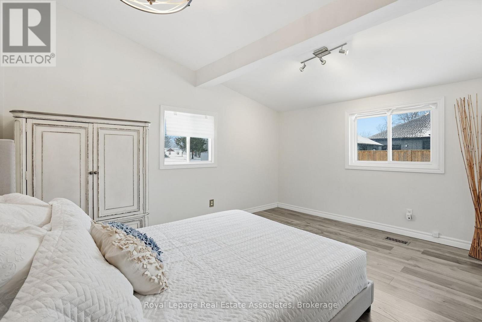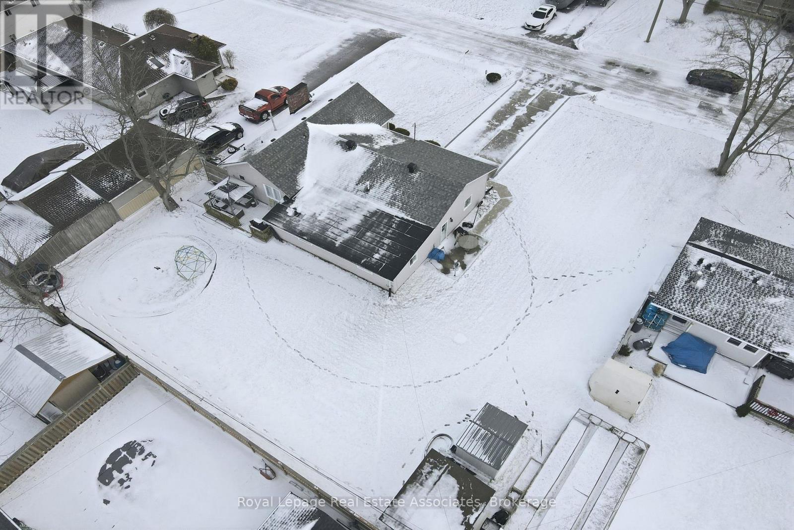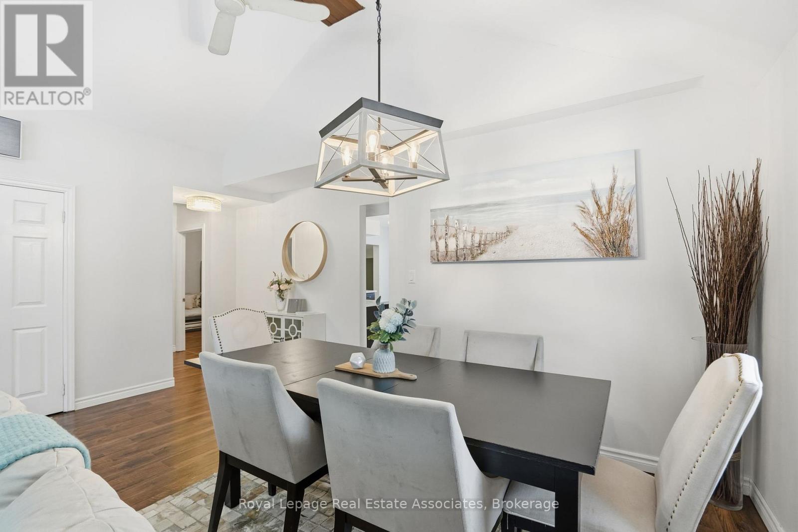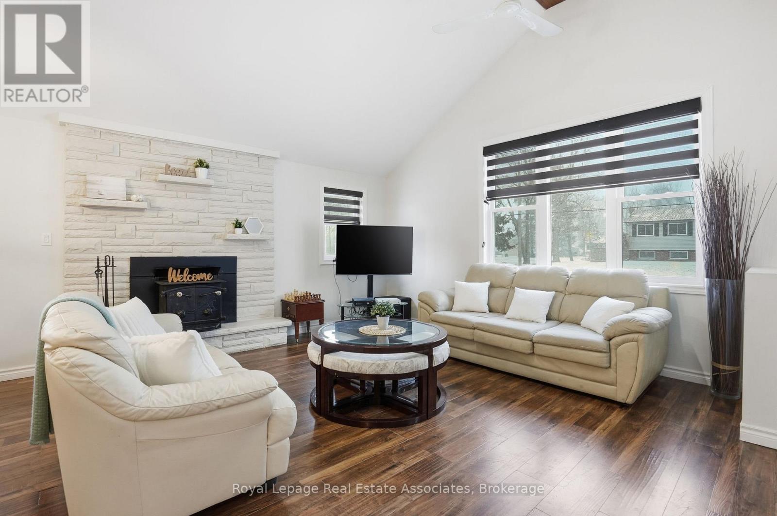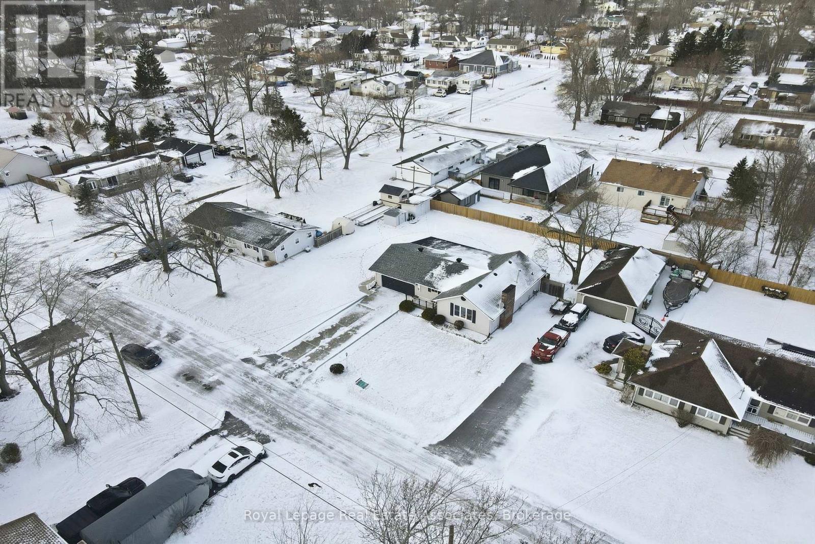 Enjoy one-floor living in a superb location just a short walk to the beautiful beach in upscale Ridgeway. This well-maintained, sprawling bungalow sits on an impressive 104 x 125 lot, offering exceptional space, privacy, and versatility. Inside, you'll find an elegant great room with soaring 12-foot ceilings and a striking brick fireplace, creating a warm and inviting focal point. The large eat-in kitchen offers easy access to the backyard and deck, making it perfect for everyday living and entertaining. The home features three generously sized bedrooms plus a den, ideal for a home office or additional living space. Additional highlights include a huge garage with high ceilings, and a generous concrete driveway with ample parking. A fantastic opportunity in a highly desirable, walkable beachside community. (id:64974)