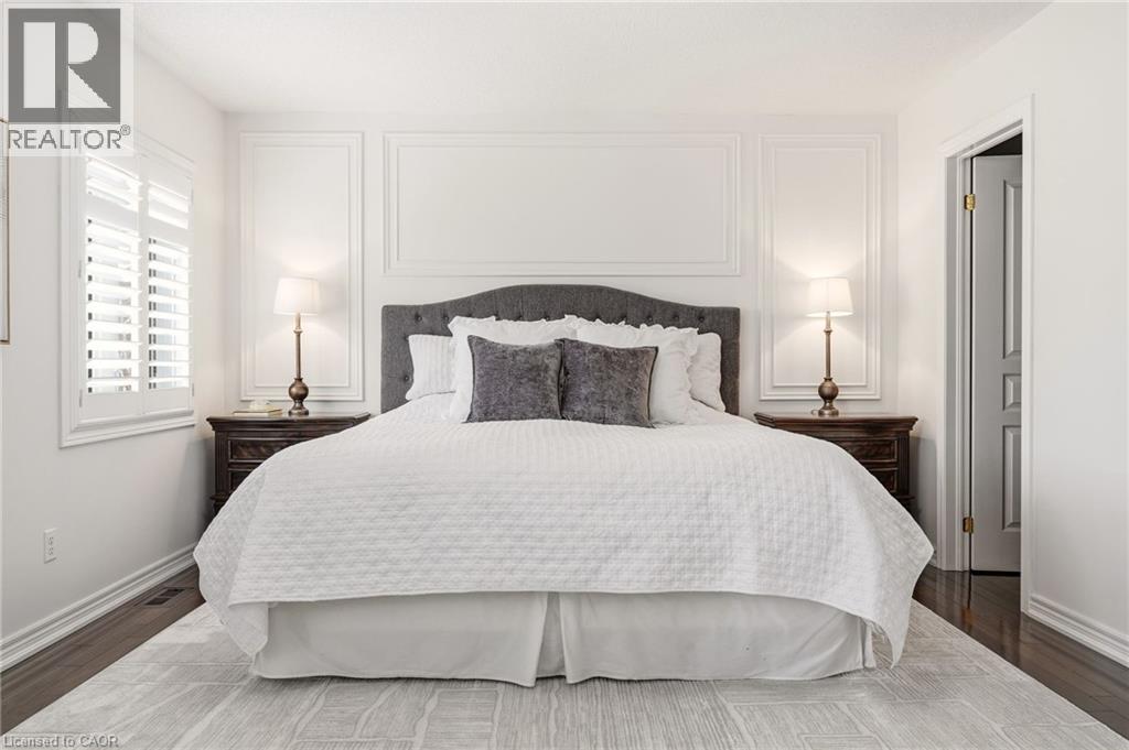 Beautifully updated 4-bedroom, 3-bathroom home set on a premium lot in a highly desirable neighbourhood. The main floor features a bright, open-concept layout with a spacious combined kitchen/living area, complete with new hardwood flooring throughout. The living room features a gas fireplace and flows seamlessly into the kitchen, which features stainless steel appliances, quartz countertops with a matching backsplash and sliding doors that open onto an oversized backyard. The professionally landscaped yard includes a new interlocking patio perfect for entertaining on a fully fenced, pie-shaped lot. The upper level features four generously sized bedrooms along with a 4-piece bathroom. The oversized primary bedroom features double doors, a walk-in closet and a well-appointed 5-piece ensuite with updated quartz countertops. The lower level boasts an open-concept layout, providing additional living space. Move in and enjoy this home on a quiet street, conveniently located close to shopping, major highways, schools and Oakville Trafalgar Memorial Hospital. (id:64974)