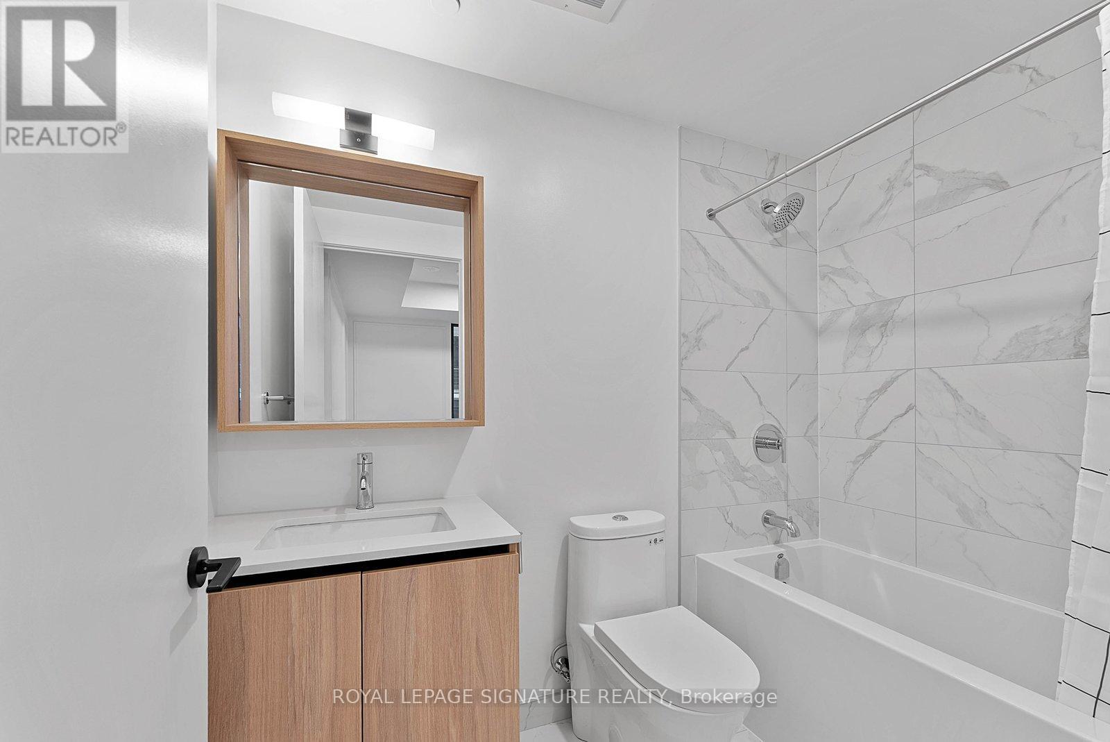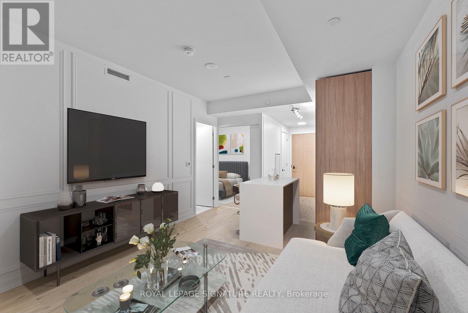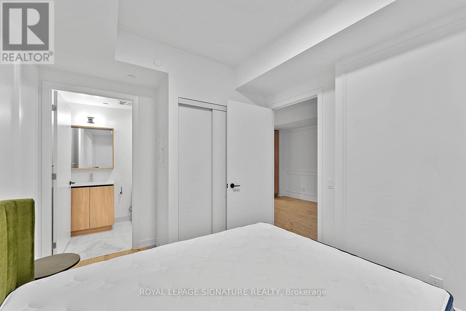 Brand new, never lived in 2bedroom suite at The Goode with modern finishes throughout. The kitchen features brand new built-in appliances and a contemporary design, open to the combined living/dining area, creating an efficient layout for everyday living and entertaining. The combined living/dining area has an open feel with seamless flow from the kitchen and walk out to balcony. The primary bedroom includes a large window, closet, and a private 4-piece ensuite. The second bedroom features sliding doors and a large closet, ideal for guests, a home office, or additional living space. A separate 4-piece bathroom completes the suite. Located in the heart of the historic Distillery District, surrounded by trendy shops, cafés, and restaurants. Close to the waterfront along Lake Ontario, with easy access to trails, parks, and convenient commuting. Some photos virtually staged, kitchen island is virtual. (id:64974)
