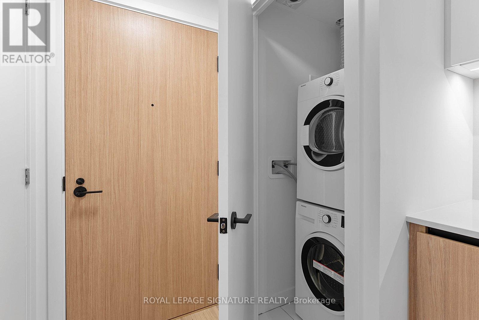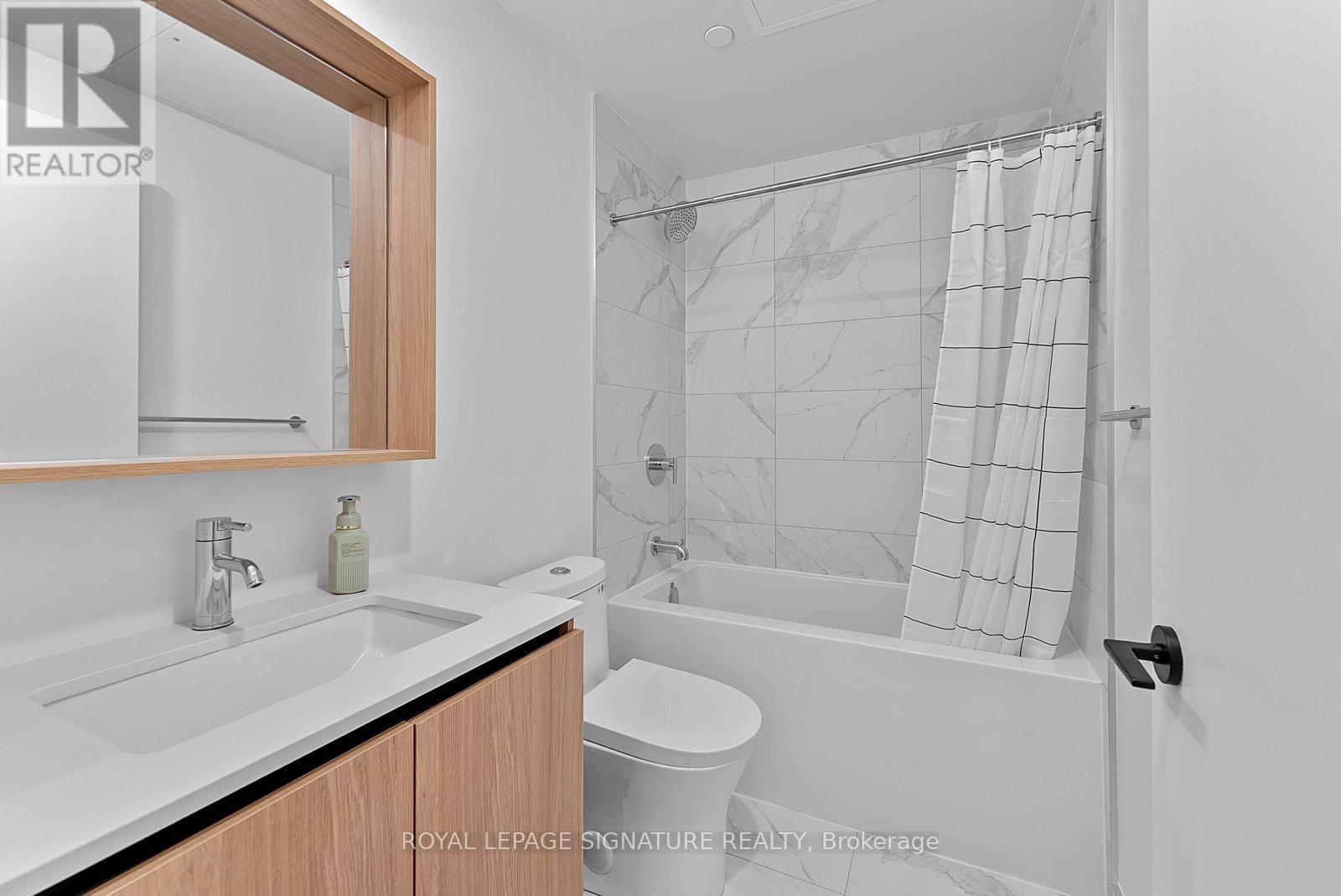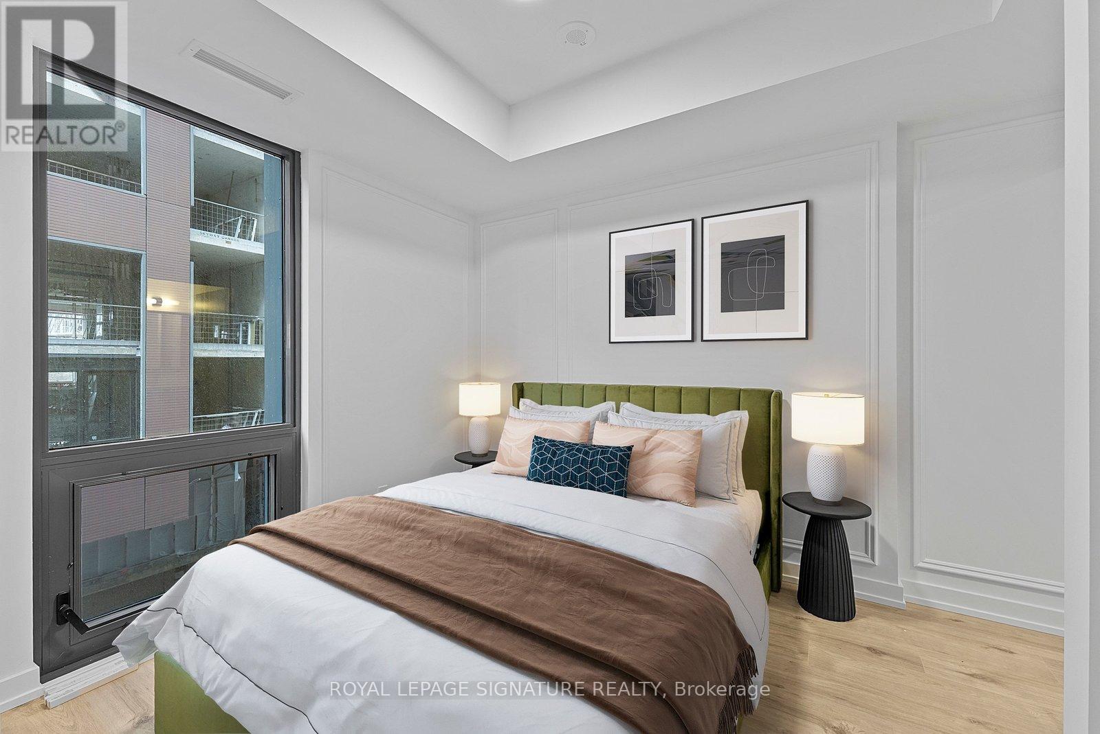 Brand new, never lived in 2bedroom suite at The Goode with modern finishes throughout. The kitchen features brand new built-in appliances and a contemporary design, open to the combined living/dining area, creating an efficient layout for everyday living and entertaining. The combined living/dining area has an open feel with seamless flow from the kitchen and walk out to balcony. The primary bedroom includes a large window, closet, and a private 4-piece ensuite. The second bedroom features sliding doors and a large closet, ideal for guests, a home office, or additional living space. A separate 4-piece bathroom completes the suite. Located in the heart of the historic Distillery District, surrounded by trendy shops, cafés, and restaurants. Close to the waterfront along Lake Ontario, with easy access to trails, parks, and convenient commuting. Some photos virtually staged, kitchen island is virtual. (id:64974)
