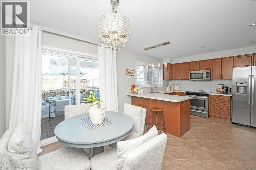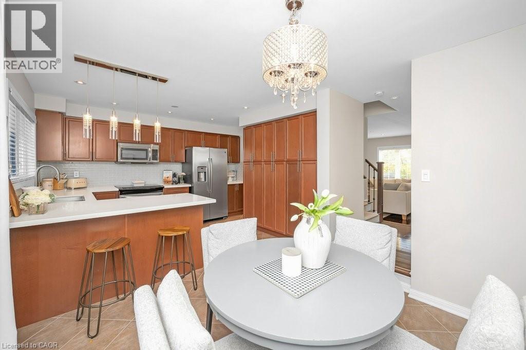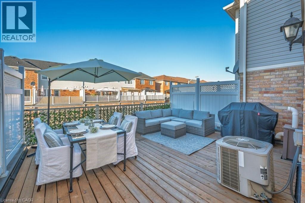 Stylish move-in ready FREEHOLD Townhome w/Double Garage steps to shops, cafés & everyday essentials. Thoughtfully upgraded with modern finishes and recent updates, pride of ownership shines from the moment you enter the spacious, welcoming Foyer. Engineered Hardwood floors, smooth ceilings, solid oak staircase w/tread lighting, pot lights, updated trim & fresh on-trend finishes throughout. Dream Kitchen w/Breakfast Bar, Quartz counters, S/S appliances, Custom Cabinets to ceiling height, Large Pantry, Dining area & Walk-Out to an incredible 17' x 20' Deck perfect for summer hangouts. Bright, open Living Room/Great Room with eng. hardwood, pot lights & oversized windows creates the ideal space for hosting friends. Private Primary Suite offers a spacious 4 pc Ensuite w/soaker Tub and Walk-In closet. Beautifully refreshed in 2025, the 2nd Bedroom features stylish Wainscoting, Wallpaper & Designer Lighting, plus access to a sleek 4pc Main Bath with built-in Vanity. Large, sun-filled main floor Family Room off the Foyer offers bright Flex space: Home Office, Guest Room, Gym & more! Main floor Laundry with new side by side Washer, Dryer & Laundry sink. Huge Double Car Garage w/inside entry. Key updates include Roof '21, Garage Door '21, Deck '23, Smooth Ceilings '21, Carpet, Paint, Trim & more!! Walk to Farm Boy, Starbucks & Shoppers Drug Mart Plaza, Parks, Restaurants & well ranked schools, with quick Hwy 407 access for an easy commute. Only 10 min. to Appleby GO & QEW. Only 15 min. to the Lakefront or Bruce Trail hiking. The perfect move-in ready home to start your next chapter! (id:64974)