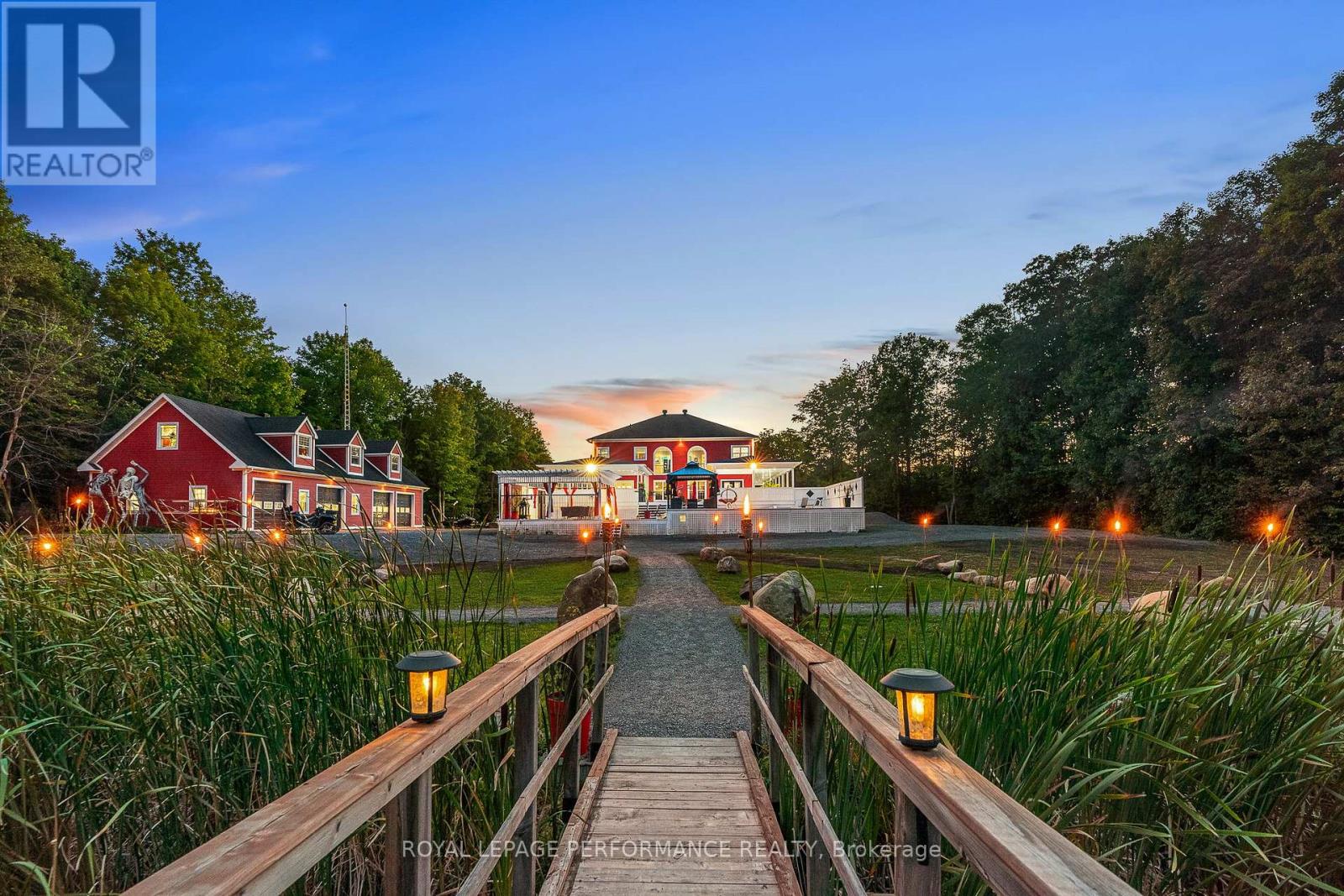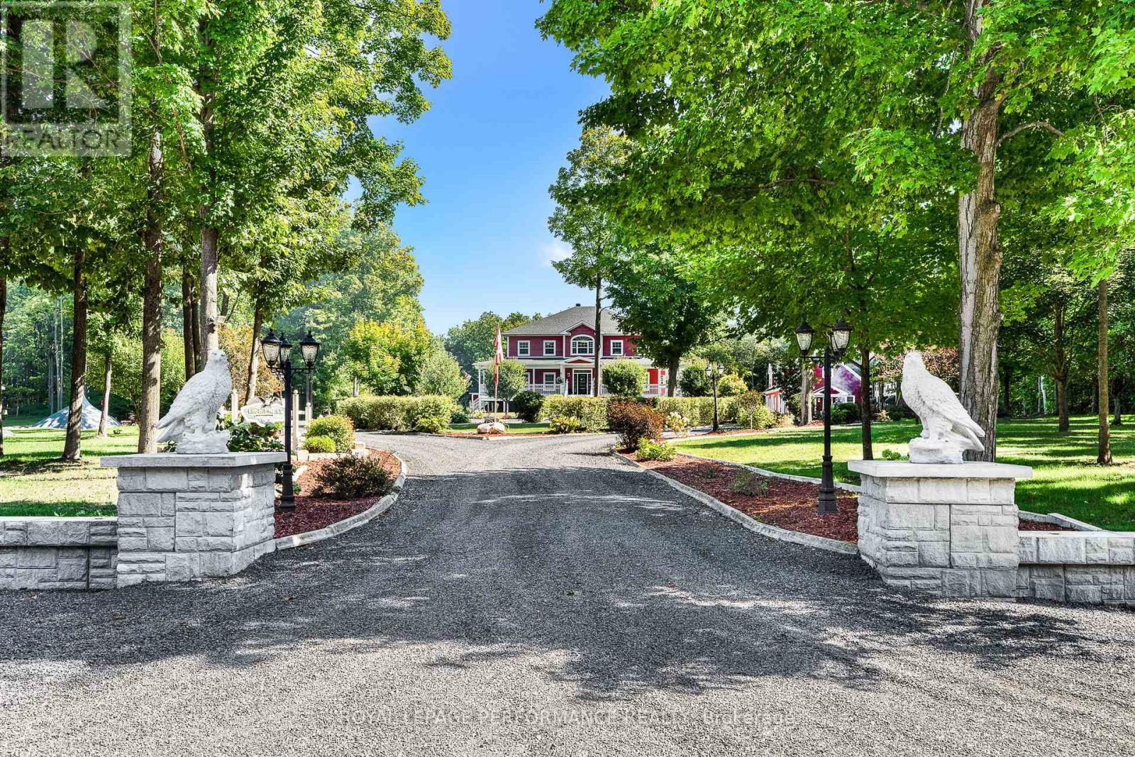 PRESTIGIOUS 3-Acre Luxury Estate | Alexandria, Ontario. Step into a world of elegance and refined living at this extraordinary 6,000 sq. ft. custom estate. Nestled on 3 manicured acres with no rear neighbors, this private retreat blends architectural grandeur with resort-inspired amenities creating a property unlike any other in Eastern Ontario. Crafted with impeccable detail, this home boasts 5 + 1 bedrooms and 4 full baths, all adorned with extensive millwork, soaring ceilings, and granite finishes throughout. The chef's kitchen is a masterpiece, featuring custom cabinetry, a sprawling island, and professional-grade appliances. The great room, with its dramatic stone fireplace and floor-to-ceiling windows, provides a breathtaking backdrop for both intimate evenings and grand gatherings. A fully finished lower level offers a bar, additional fireplace, and separate entrance ideal for an elegant entertainment lounge, nanny quarters, or private in-law suite. The estate offers a lifestyle of leisure, luxury, and natural beauty; Private shooting range for recreation, a 2,150 sq. ft. 4-door garage (9 x 10 doors) with loft storage perfect for a collector or hobbyist, a Tiki Island escape and heated pool for resort-style living. Expansive covered porches encircling the home, perfect for entertaining in every season. Professionally designed landscaping with stone features, mature trees, and enchanting vistas. A property alive with nature - its not rare to wake up and find 20 deer grazing peacefully in your backyard. Limitless possibilities from hosting elegant weddings to creating an exclusive Airbnb retreat, the opportunities are endless. This estate is equally suited as a luxurious private sanctuary or a revenue-generating investment. The location is situated in the tranquility of Alexandria yet ideally positioned along the 401, this estate offers seamless access to Montreal, Ottawa, and Toronto. A rare opportunity to own a world-class property in a prime location. (id:64974)