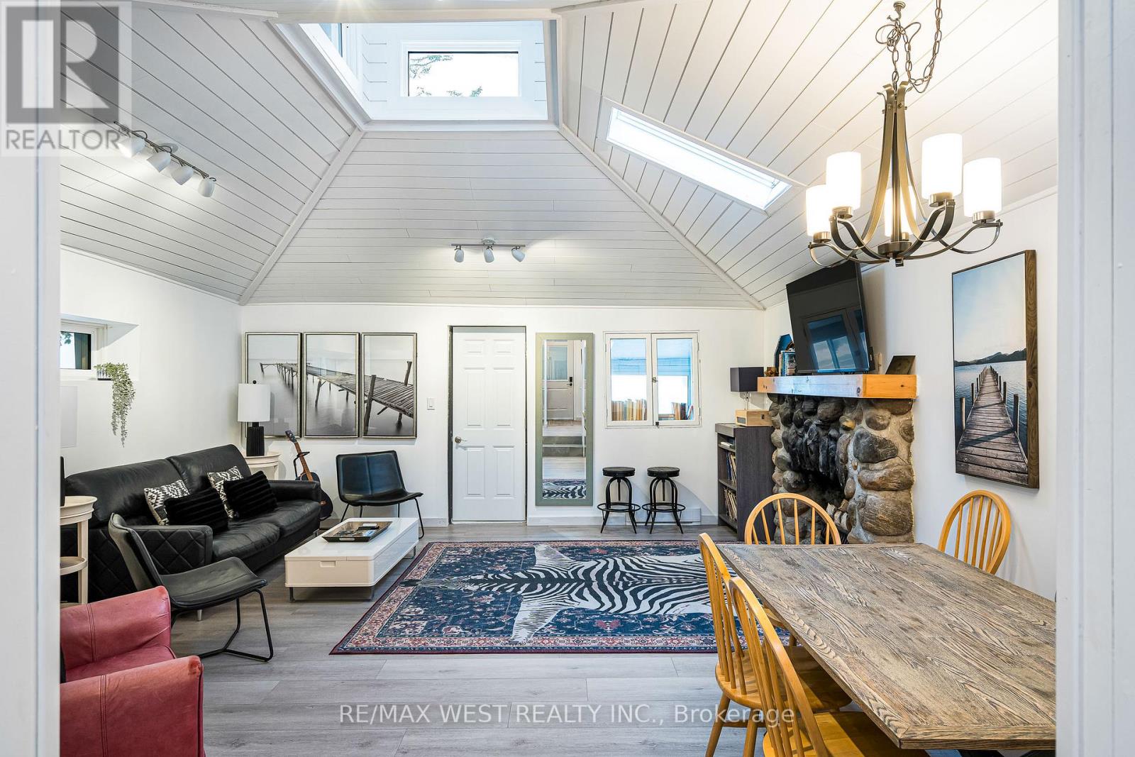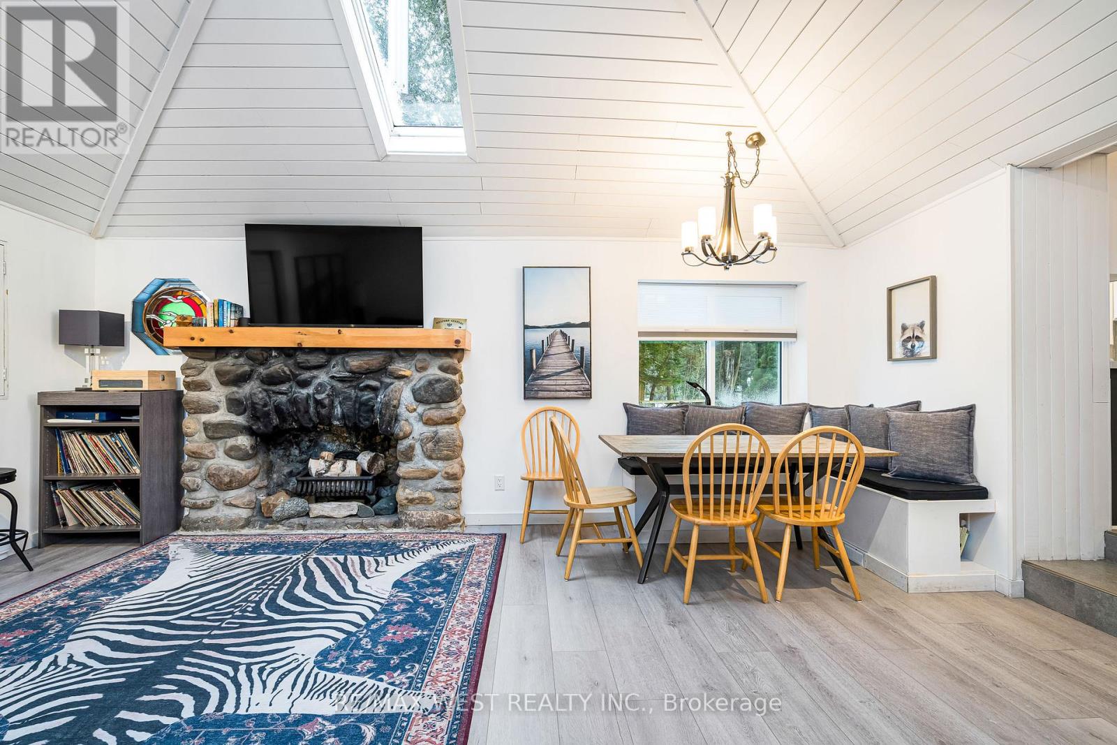 Unlimited possibilities!!!! The water and waves at your footsteps!!! This classis updated Georgian Bay retreat is only missing you With 79 feet of private shoreline where shallow, clear waters and a private yard space this property has something for everyone Updated from top to bottom it has something for everyone . The boathouse has been converted into a bunkie space or could go straight back to a boathouse, sleeping quarters, bar area or home office, the detached garage with an attached shed has room for all your gear and also has many possibilities or potential. Inside has been renovated from start to finish alowing for turn key operation with no costs upfront while allowing the rustic charm to stick around, newer vinyl plank flooring, fresh paint, and vaulted ceiling finished with a shiplap showcasing aan amazing skylight that crowns the space. Stay cozy year-round with a newer heat pump for heating and cooling, plus an electric fireplace for added ambiance. A Murphy bed adds flexibility for guests, featuring a newer washer and dryer and renovated bathroom complete with glass shower. Some newer energy-efficient windows and an updated patio door as well as a newer water cistern system and annually maintained septic make this ready for anyone. (id:64974)