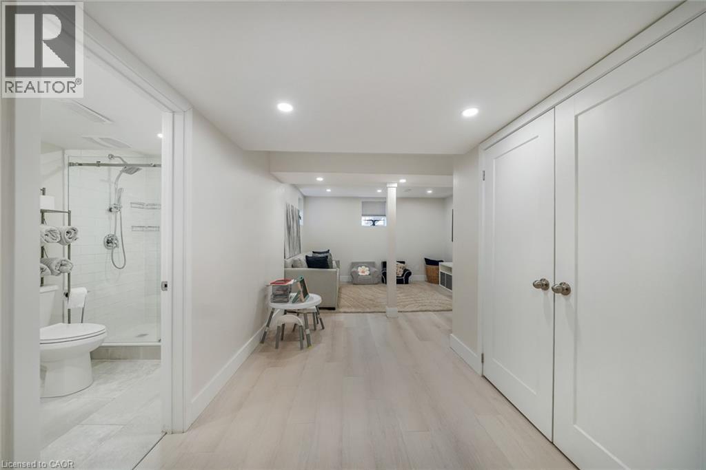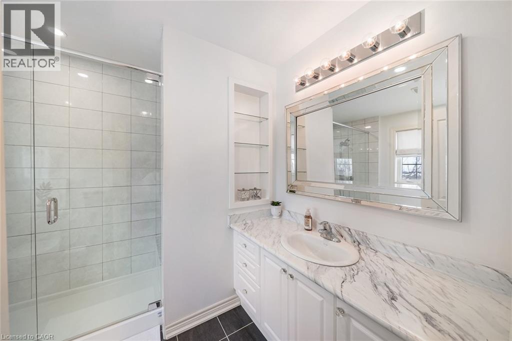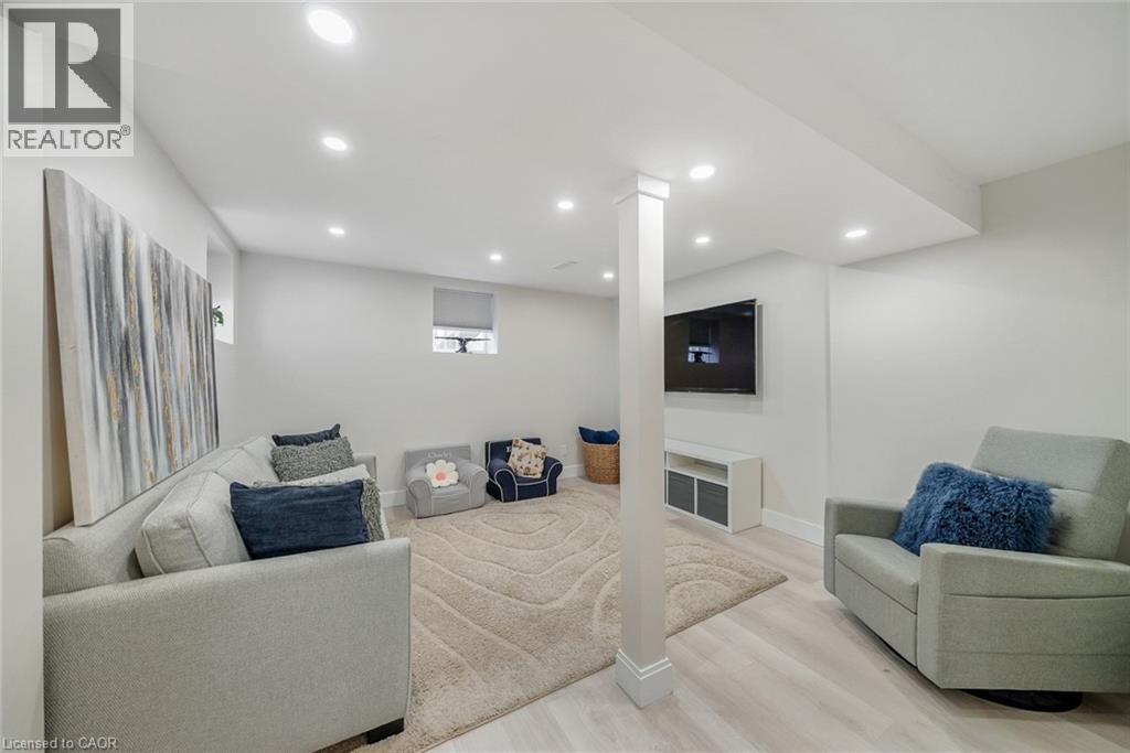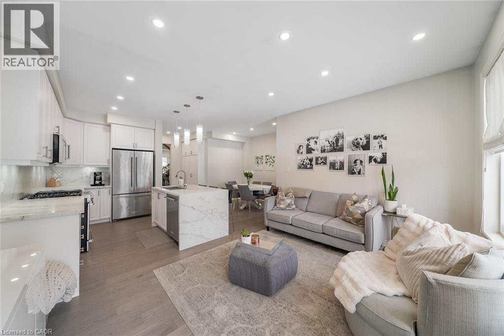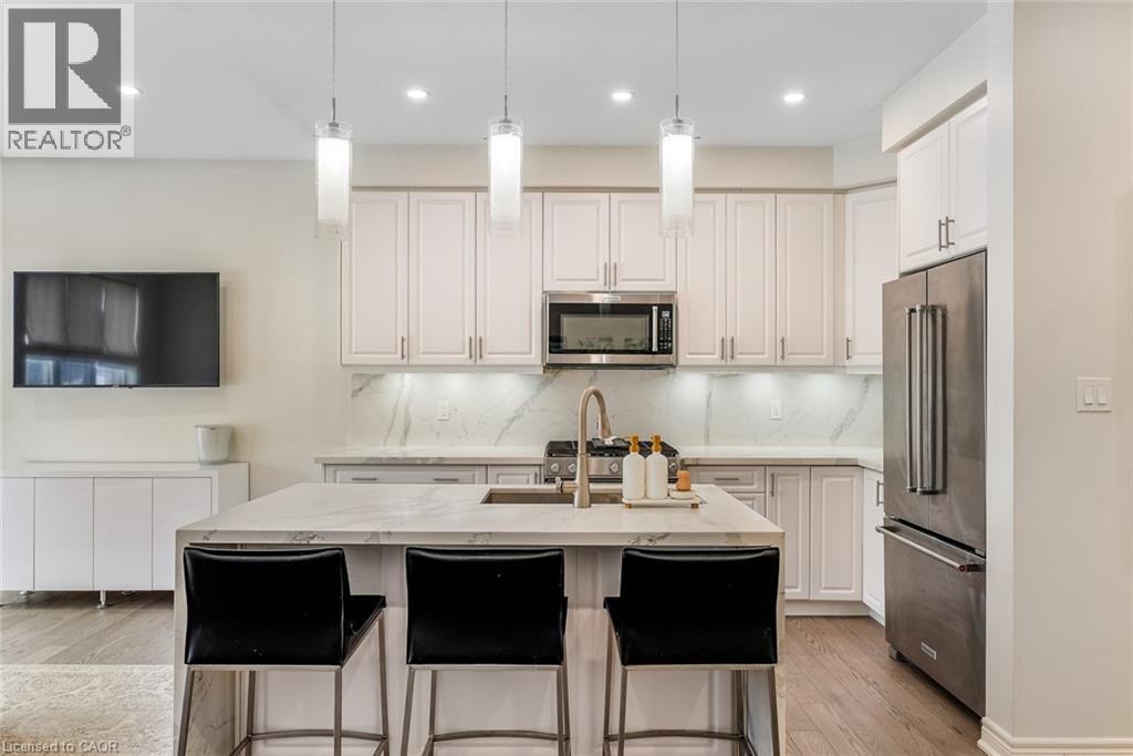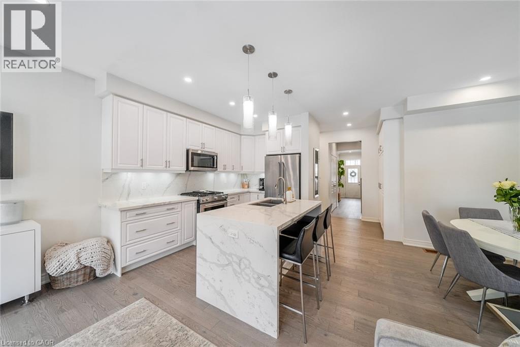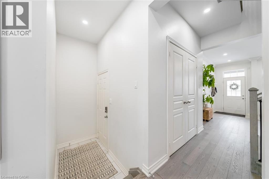 Welcome to this beautifully updated freehold townhome-with no condo fees-backing onto green space with a walking path and uninterrupted views of nature. With forested trails just beyond your fence and serene views from your rear windows, morning coffee walks and evening strolls just got a whole lot better. The fully fenced backyard features newer interlocking stone and mature greenery, creating a private outdoor setting. Inside, the layout truly stands out. The main floor was designed for gathering around the kitchen island, while also offering a separate breakfast area and a formal dining space; this is a rare and highly functional combination in a townhome. The back windows overlook the green space, bringing in natural light and peaceful views year-round. Extensively updated throughout, the home features hardwood flooring, pot lights, updated appliances, quartz countertops, smart switches, and several thoughtful modern upgrades. Exceptional storage can be found across every level of the home. Upstairs there are three generously sized bedrooms, two full bathrooms, and a beautifully renovated laundry room with quartz countertops, custom cabinetry, and backsplash. The spacious primary suite includes a beautifully reimagined ensuite that was reconfigured to allow for a larger shower and a more functional layout. The finished basement adds even more versatility with a full bathroom, recreation space, and additional storage; a perfect additional space for entertaining, guests, or a home gym. The garage adds exceptional functionality with overhead storage and a thoughtfully designed layout that has interior access through a separate transition space; so you’re not stepping directly into the main living area; along with rare direct access to the backyard, making outdoor living and yard maintenance easy! Thoughtfully updated and meticulously maintained, this home delivers space, smart design, privacy, and lifestyle in one of Waterdown’s most desirable communities (id:64974)