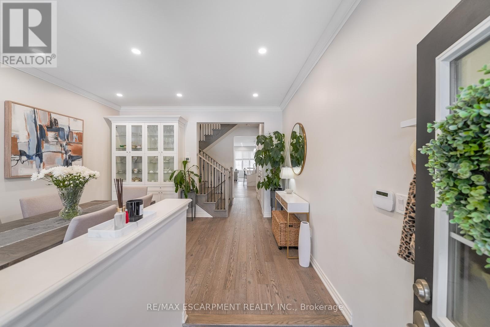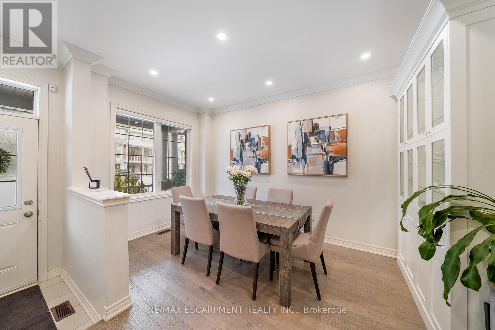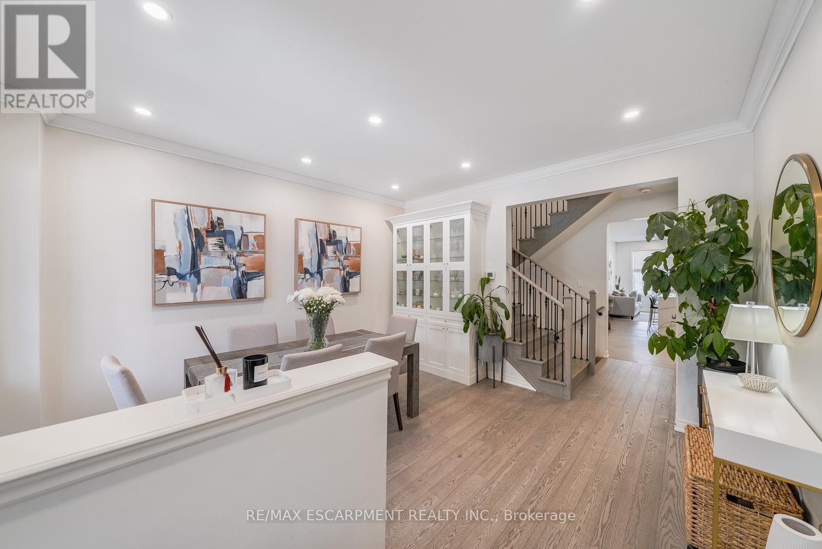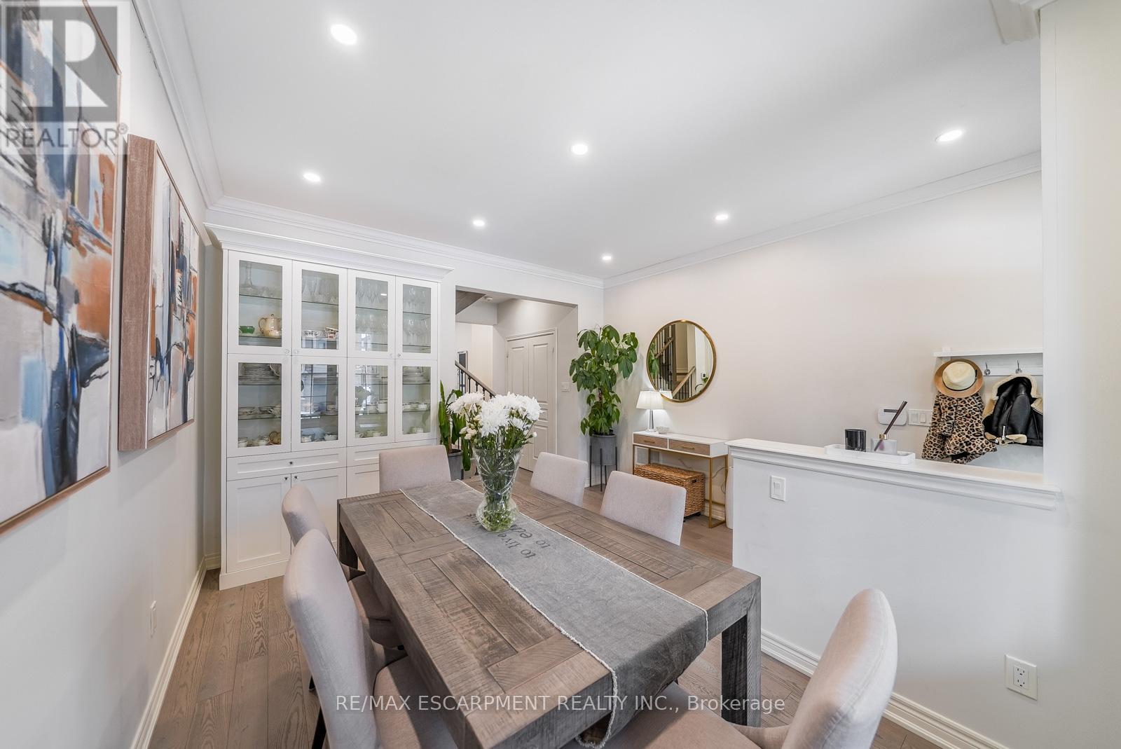 Welcome to this beautifully updated freehold townhome - with no condo fees - backing onto green space with a walking path and uninterrupted views of nature. With forested trails just beyond your fence and serene views from your rear windows, morning coffee walks and evening strolls just got a whole lot better. The fully fenced backyard features newer interlocking stone and mature greenery, creating a private outdoor setting. Inside, the layout truly stands out. The main floor was designed for gathering around the kitchen island, while also offering a separate breakfast area and a formal dining space; this is a rare and highly functional combination in a townhome. The back windows overlook the green space, bringing in natural light and peaceful views year-round. Extensively updated throughout, the home features hardwood flooring, pot lights, updated appliances, quartz countertops, smart switches, and several thoughtful modern upgrades. Exceptional storage can be found across every level of the home. Upstairs there are three generously sized bedrooms, two full bathrooms, and a beautifully renovated laundry room with quartz countertops, custom cabinetry, and backsplash. The spacious primary suite includes a beautifully reimagined ensuite that was reconfigured to allow for a larger shower and a more functional layout. The finished basement adds even more versatility with a full bathroom, recreation space, and additional storage; a perfect additional space for entertaining, guests, or a home gym. The garage adds exceptional functionality with overhead storage and a thoughtfully designed layout that has interior access through a separate transition space; so you're not stepping directly into the main living area; along with rare direct access to the backyard, making outdoor living and yard maintenance easy! Thoughtfully updated and meticulously maintained, this home delivers space, smart design, privacy, and lifestyle in one of Waterdown's most desirable communities (id:64974)