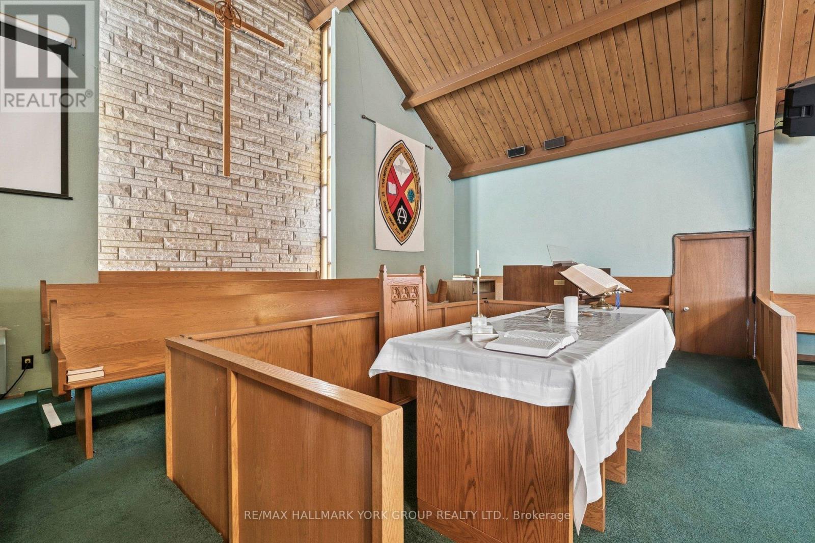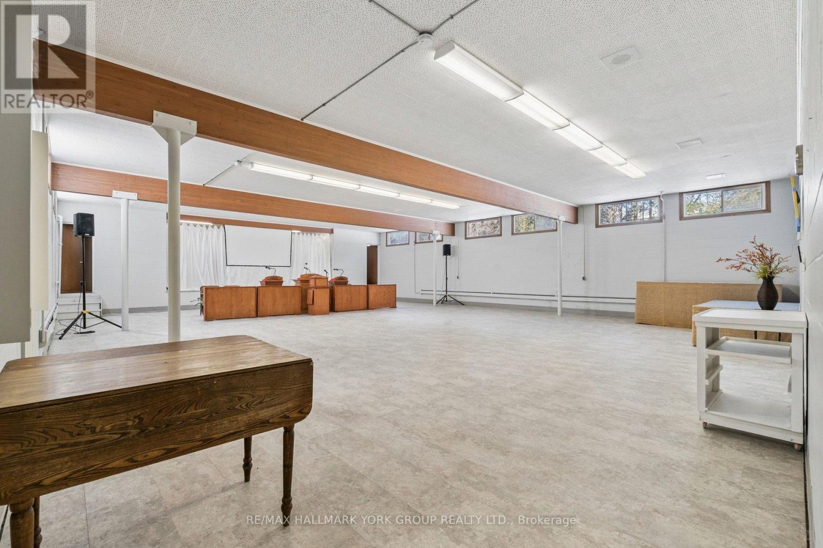 Place of Worship with space for a nursery/daycare. The property is situated on 2.94acres of desitable land in King Township within close proximity to Hwy400. Parking for approximately 35-40vehicles. Building total floor area 11554sqft (MPAC). Sanctuary accommodates 150, chapel 50, gym 160, admin office, pastor's office, meeting rooms, fellowship hall, and 2 kitchens. Lower level offers a nursery school, and gym, with plenty of storage space. Vendor is offering the property on an as-is, where-is basis.Floorplan and Matterport interactive virtual tour design attached. (id:64974)