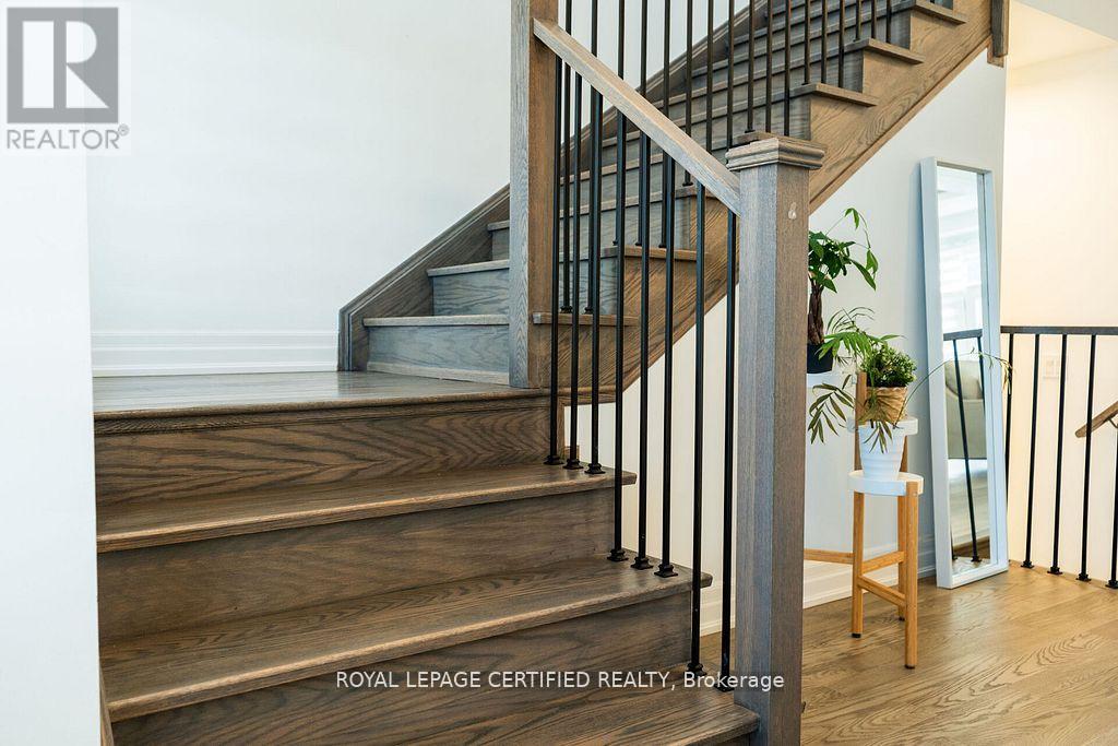 Welcome to this stunning one-year-old detached home sitting on premium lot In front of pond and scenic trail in the highly sought-after Upper Joshua Creek community of Oakville. As you step inside, the main floor impresses with 10-foot ceilings, creating a bright and open living space. The modern kitchen features quartz countertops, a large island, premium cabinetry, and stainless steel appliances - perfect for family living and entertaining. The second floor offers 4 spacious bedrooms, including a luxurious primary suite with a walk-in closet and a spa-like ensuite. Enjoy the fully fenced backyard, ideal for kids, pets, and summer gatherings. Side entrance to the basement waiting for your touches. This home combines contemporary design, quality finishes, and a prime location close to top-rated schools, parks, shopping, and major highways. (id:64974)
