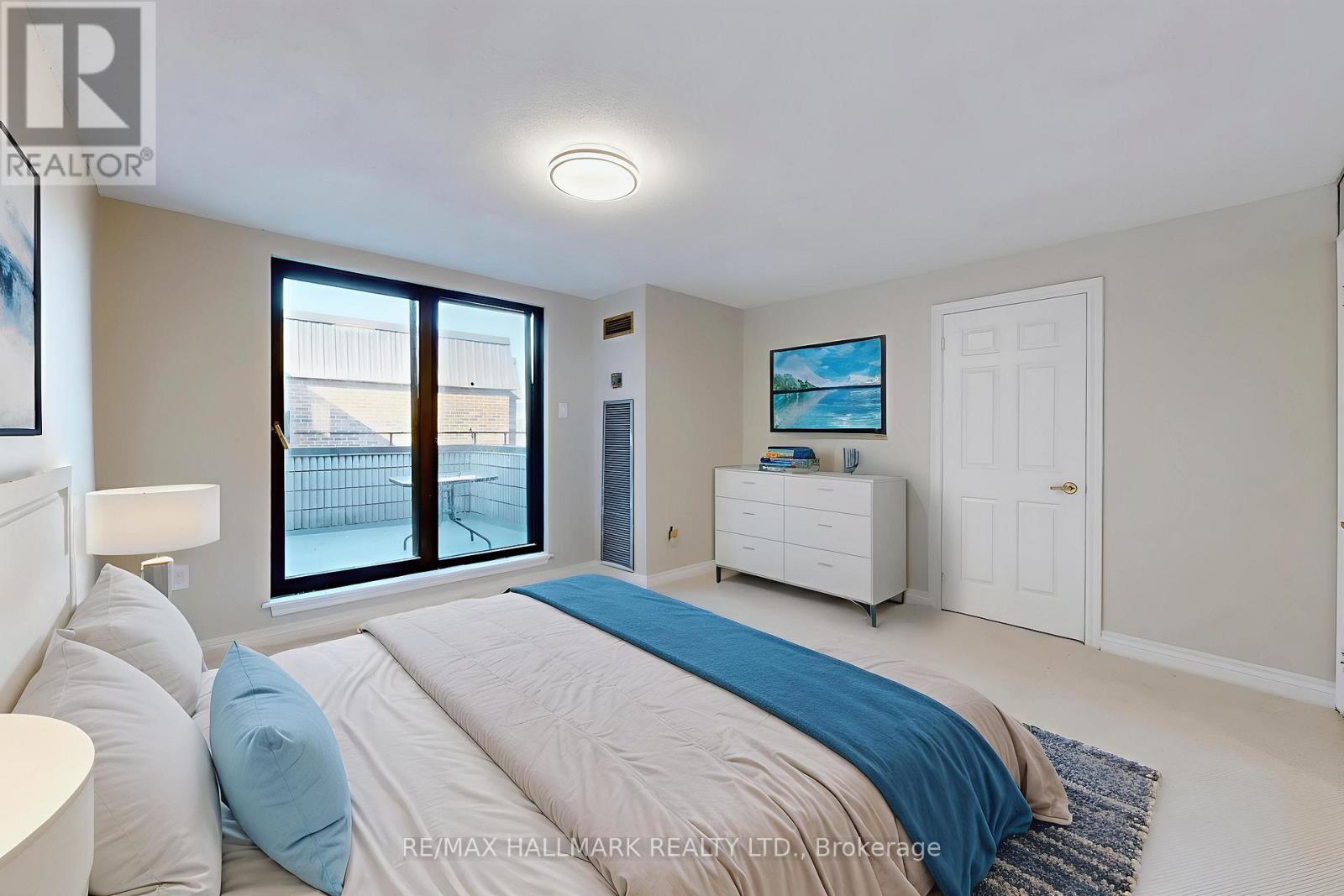 Location! Location! Location! Upgraded Two-Level Condo Apartment Offering Over 1000 Sqft & Two Private Balconies. Perfectly situated just steps from Yonge Street, this upgraded home combines functionality, comfort, and convenience with new flooring and fresh paint throughout. Step into the spacious main level featuring a bright kitchen with ample cabinetry, plenty of counter space, a centre island with breakfast bar, and existing appliances such as fridge, stove, and dishwasher. The open-concept living and dining area is ideal for entertaining, with a seamless walk-out to the main-level balcony. A versatile additional room on this floor offers flexibility as a home office, guest room, or bedroom. Upstairs, the primary suite boasts a large walk-in closet with custom organizers, a 4-piece ensuite with soaking tub and shower, and direct access to a private upper-level balcony. A dedicated laundry room with a full-sized washer and dryer completes the upper level. This unit includes underground parking conveniently located near the elevator. Maintenance fees cover most utilities including hydro, water, heat, cable TV, and internet, delivering excellent value. Residents have access to a range of building amenities including an indoor pool, sauna, recreation room, and visitor parking. Nestled in a prime Thornhill neighborhood, enjoy close proximity to Centrepoint Mall, top-rated schools, parks, public transit, and major highways, making commuting and daily living a breeze. Don't miss this fantastic opportunity to own a spacious condo in a highly sought-after area. Property is being sold as is/where is. **Some photos have been virtually staged. (id:64974)